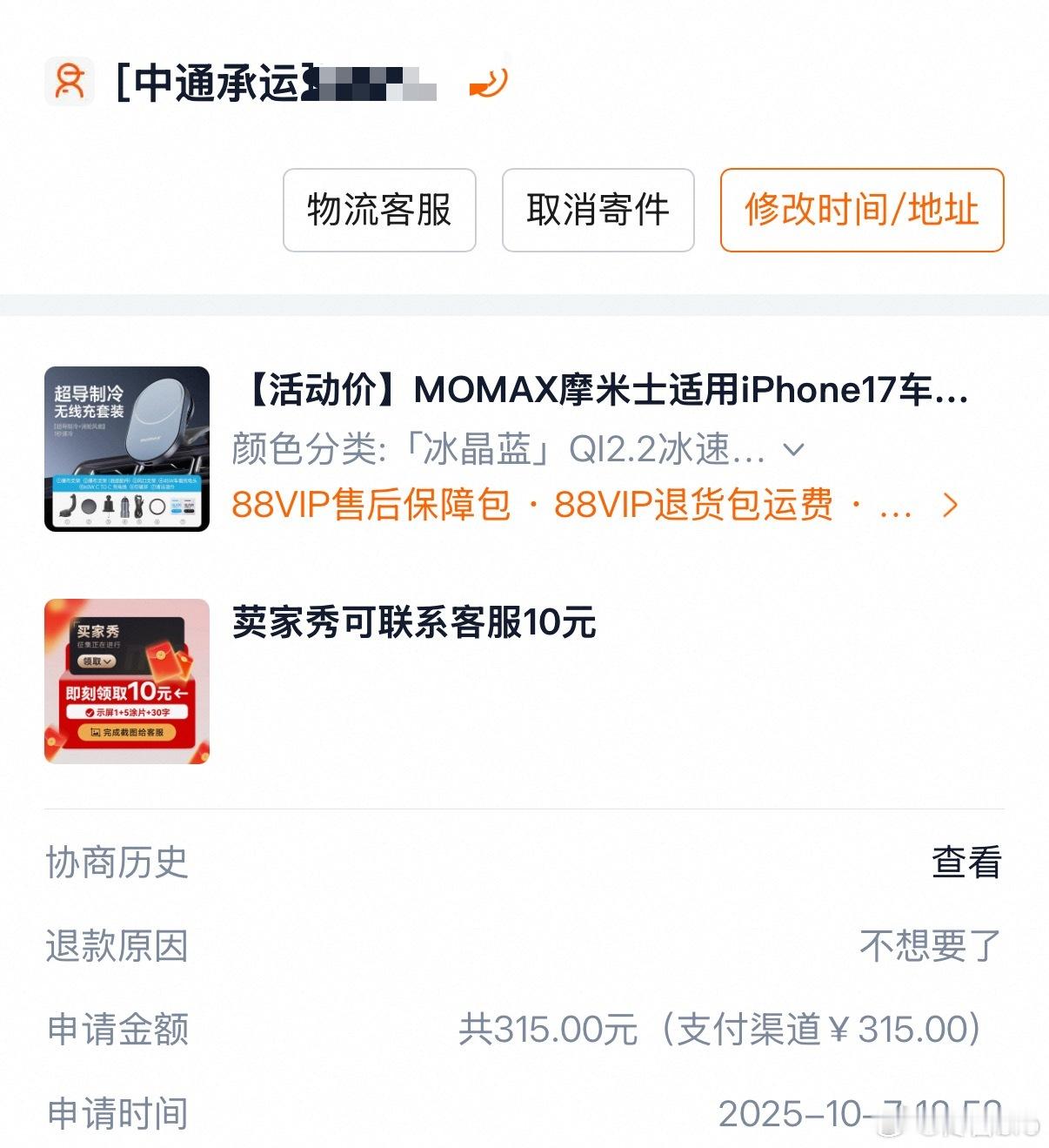 某宝退货弹出一个部分退款,商品自行处理的选项