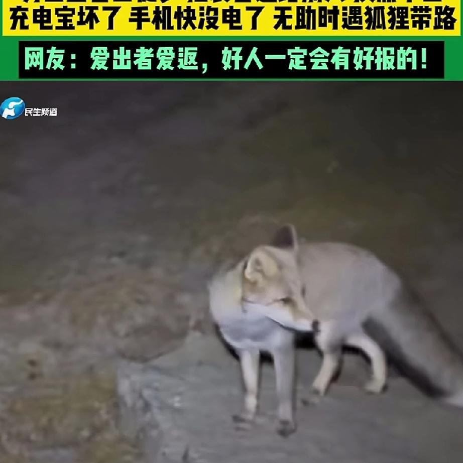 男生五台山徒步,把装备送给了别人,自己摸黑下山,充电器坏了手机也快没电了,男生估计今晚在这黑灯瞎火山上走不出去了,无助时遇到孤狸带路。 一只孤狸出现在男生面前突然停下了,这时让男生顿时有了恐惧感,让人没想到的是孤狸走俩步一回头看看后面的男生,男生十分好奇就一直跟在孤狸的后面,心里不再害怕就这样孤狸带路走走停停,带着男生走出了一公里的路,男生才意识到原来孤狸在给自己带路,最终孤狸把他带到终点看见了灯光后,孤狸转身退去! 也许是男生的善良打动了孤狸带路,同时仁义的孤狸感动了无数网友:爱出者爱返,好人一定会有好报的!