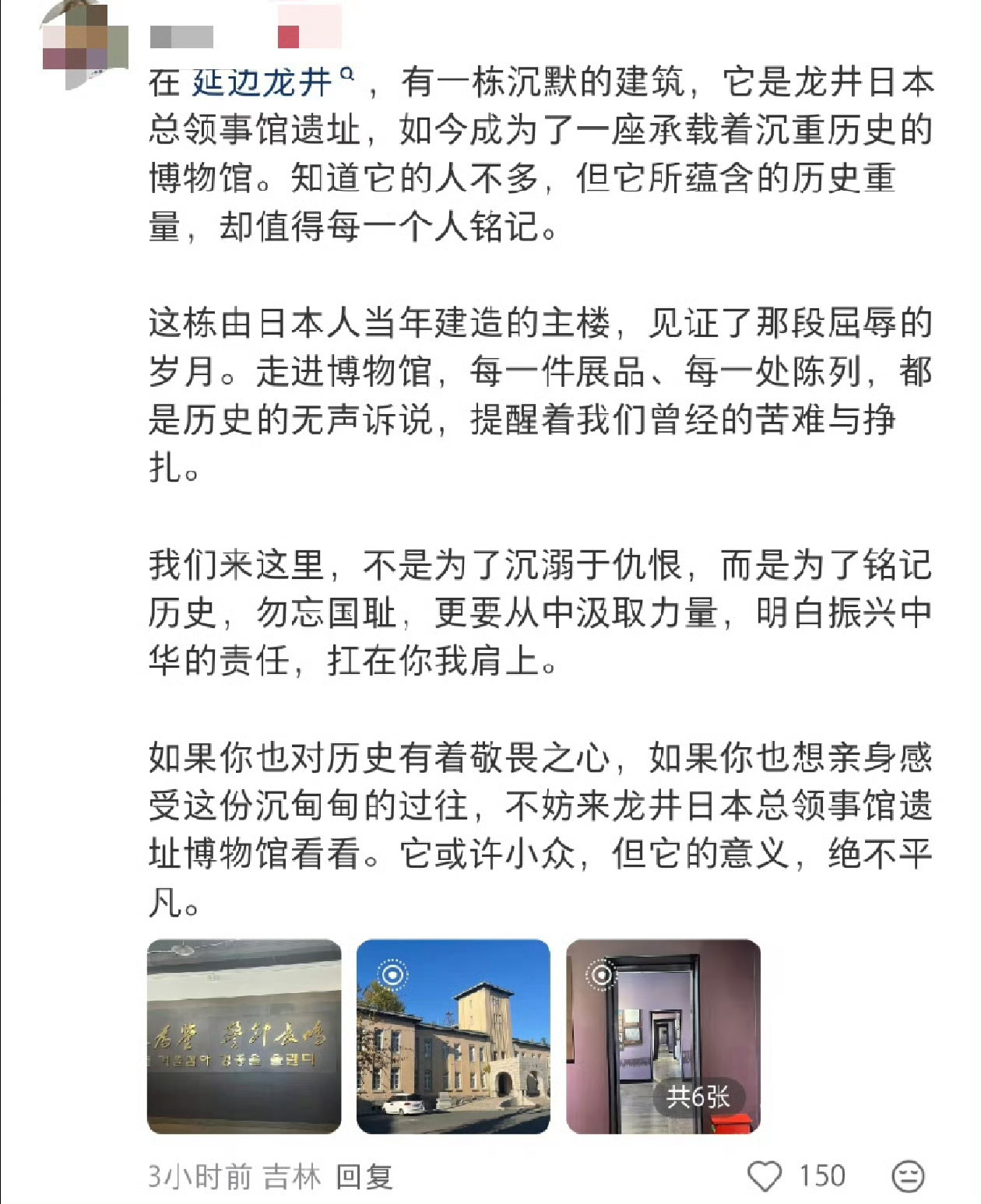 杨幂去了龙井日本遗址博物馆 杨幂去了龙井日本总领事馆遗址,斑驳的砖墙在阳光下泛着岁月的痕迹。微风拂过她的发梢,仿佛在诉说着那些被时光掩埋的故事。