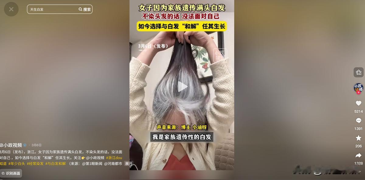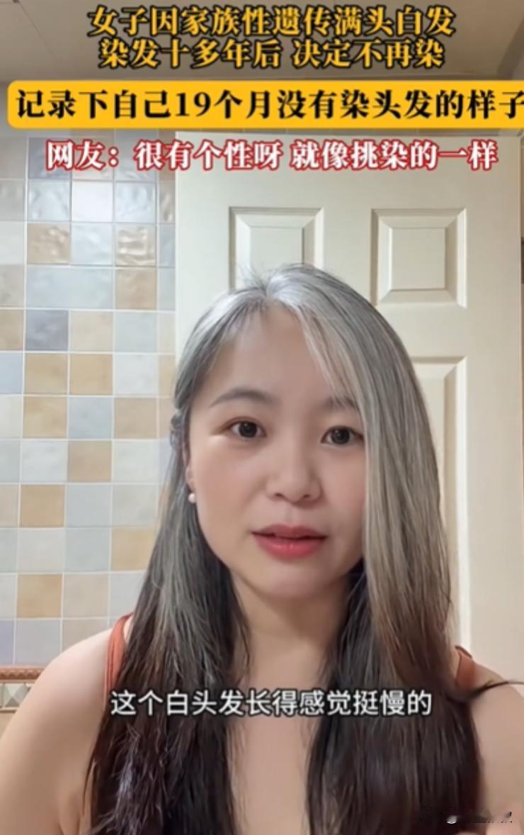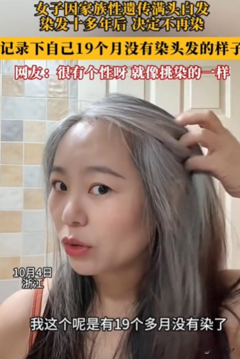 浙江一女子发现几根白发,她本以为拔了就是!万万没想到,仅仅几个月时间,她原本光亮顺滑的黑发,竟然全都变白发了!原来,她这是遗传性白发,家族里的人都有,她父亲甚至30岁头发就都白了,她有点自卑和焦虑,为此整整染了10多年头发,现在她决定不染了! 那天早晨我跟往常一样梳头,梳子刚划过头顶,就瞥见镜子里飘下来一根白头发,我愣了一下,捏着那根头发对着光看,发根是白的发梢还带着点黑。 那时候我二十多岁,正是爱臭美的年纪,哪能接受这个,想都没想就把它拔了,心里还嘀咕:“就一根,拔了就没事了。” 可我没想到这根白发像个信号似的,没过多久梳头时总能摸到一两根白的,我还是老办法,见一根拔一根,有时候对着镜子能拔十几分钟,手指都捏酸了,我总觉得只要把它们拔干净,头发就能一直黑下去。 可现实偏不遂人愿,也就三四个月的功夫,我再照镜子时,心一下子沉了,头顶那片头发,已经能明显看到一片白,不再是零星几根,而是密密麻麻地掺在黑发里,风一吹白花花的特别显眼。 我赶紧给我妈打电话,语气都慌了:“妈,我头发怎么白了这么多?” 我妈在电话那头叹了口气,说:“你忘了你爸了?他三十岁头发就全白了,咱们家这是遗传。” 挂了电话,我盯着镜子里的自己,越看越难受,那时候我在公司做行政,每天要跟不少人打交道,一想到别人看见我一头花白头发,可能会说 “这么年轻怎么头发就白了”“是不是身体不好”,我就浑身不自在,从那以后我开始戴帽子,不管夏天多热,都把头发遮得严严实实,开会时也总下意识地摸帽子怕它掉下来。 后来同事跟我说:“你不如去染了吧,染完就看不出来了,” 我想也是就找了家理发店,选了最接近我原发色的黑色染发剂,当理发师把染膏抹在头上,刺鼻的味道让我有点头晕,但看着镜子里头发慢慢变黑,心里还是松了口气,染完那天,我特意扎了个高马尾,走路都觉得轻快,好像那一头白发从没出现过一样。 可遗传的力量太犟了,不到半个月,头顶就冒出一圈白茬,黑头发裹着白根,看着特别别扭,像头上顶了个 “圈”。我没办法,只能去补染,从那以后,每个月去两次理发店成了我的固定行程,有时候工作忙没时间去,看着头顶的白茬就烦躁,连出门都没底气。 染发剂的味道闻久了,我总觉得头疼,头皮也越来越敏感,有时候染完第二天就又红又痒,起小疙瘩,晚上痒得睡不着,只能用手轻轻挠。我去看医生,医生说:“你这是染发剂过敏,再染下去毛囊都可能受损,以后头发可能会掉得更厉害。” 我当时嘴上答应着,可转头还是去了理发店,我实在没办法接受自己一头白发的样子。 就这么染了十多年,我也快四十岁了,有天晚上我洗完头,看着镜子里湿淋淋的头发,白茬又冒出来了,头皮还在隐隐发痒。我摸着自己的头发,发质早就不如以前了又干又脆一扯就断。 我突然问自己:“图啥呀?” 这十多年,我为了遮白发,花了多少钱遭了多少罪,每天都在焦虑白茬什么时候冒出来值吗? 那天晚上我打开抽屉,把里面剩下的几盒染发膏全扔了,扔完之后,我坐在沙发上,心里特别松快,像卸了个大包袱,刚开始不染发的日子,我还是有点不适应,出门总觉得别人在看我头发。 可慢慢发现根本没人在意,同事只会说 “你这白发看着还挺特别”,楼下阿姨还问我 “是不是特意做的挑染”。 现在不染发已经快两年了,头发长到了下巴,是自然的灰白渐变阳光照在上面,还能看出点淡淡的光泽,头皮早就不痒了睡觉也踏实,发质反而比以前好了些。 我有时候会拍张头发的照片发在网上,有人说 “姐姐你这白发好时髦”,还有人说 “看了你我也不想染头发了”,我才明白,以前我怕的不是白发,是自己心里那道坎,总觉得别人会指指点点,其实那些眼光都是我自己想出来的。 (信息来源:小政视频)