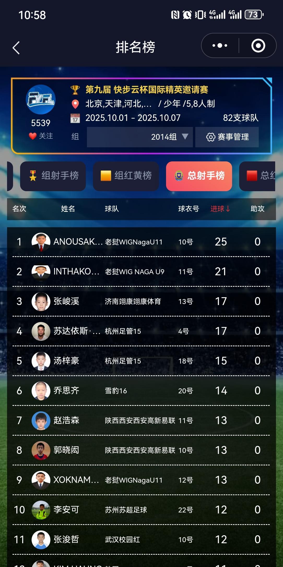 第九届快步云杯国际足球邀请赛2014组(U11),老挝WIG还是毫无悬念,整个大赛仅一场没拿下(第一阶段定级赛2:2被西安高新易联绝平),N胜1平,决赛中4:0战胜杭州足管,再一次拿下冠军(在亚洲包括中国已经拿了数不清的冠军了)。 本届比赛三个年龄组别,老挝WIG派出2014和2016两支球队,全部夺冠。 两个组别的射手榜第一也被老挝球员包揽(分别打进25球和21球)。 参赛的中国球队确实踢不过老挝WIG,这有很多值得中国青训学习和总结的。 感谢快步云杯邀请了这么好的对手来参赛,这一次,让更多人开了眼界见了世面——国外,即便是足球弱国,他们在青训上有了怎样的发展。