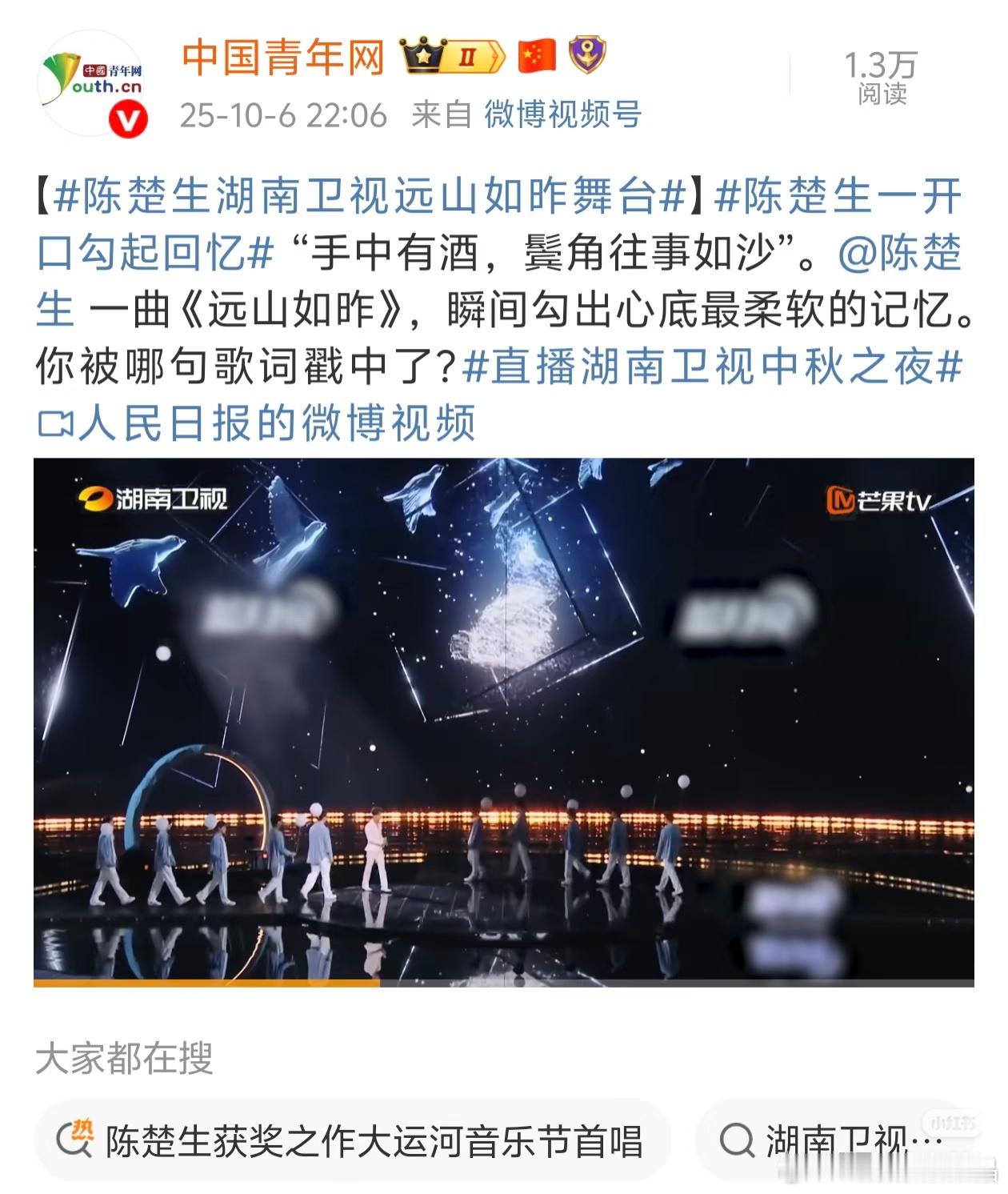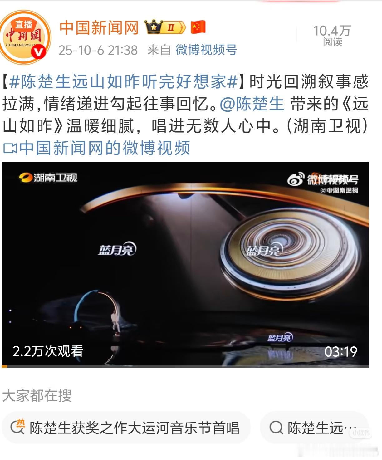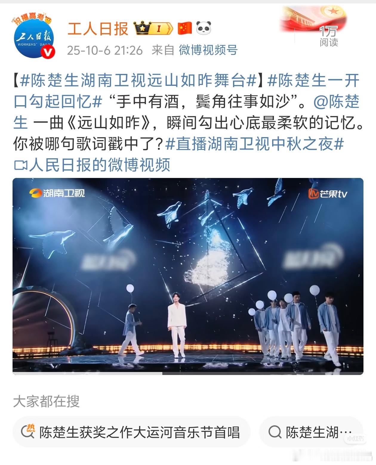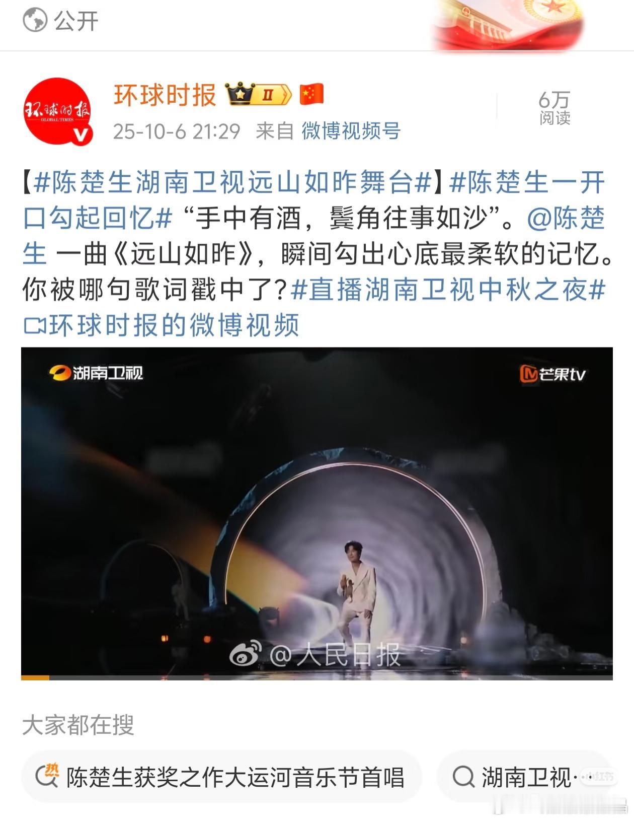 陈楚生在湖南卫视中秋晚会演唱了两首歌曲,好多官媒都报道了![鼓掌][鼓掌][鼓掌]