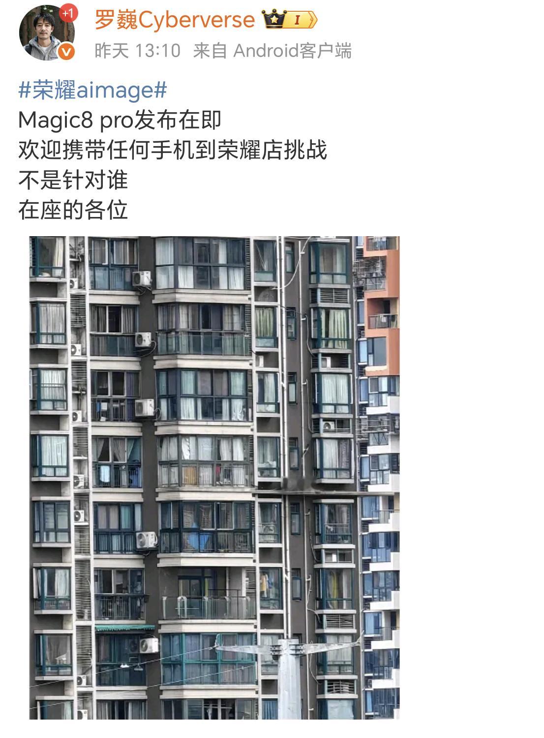 看来罗巍对荣耀Magic8 Pro长焦影像很自信,当然我也很想看看,各家长焦与荣耀新机的对比。数码闲聊站[超话]