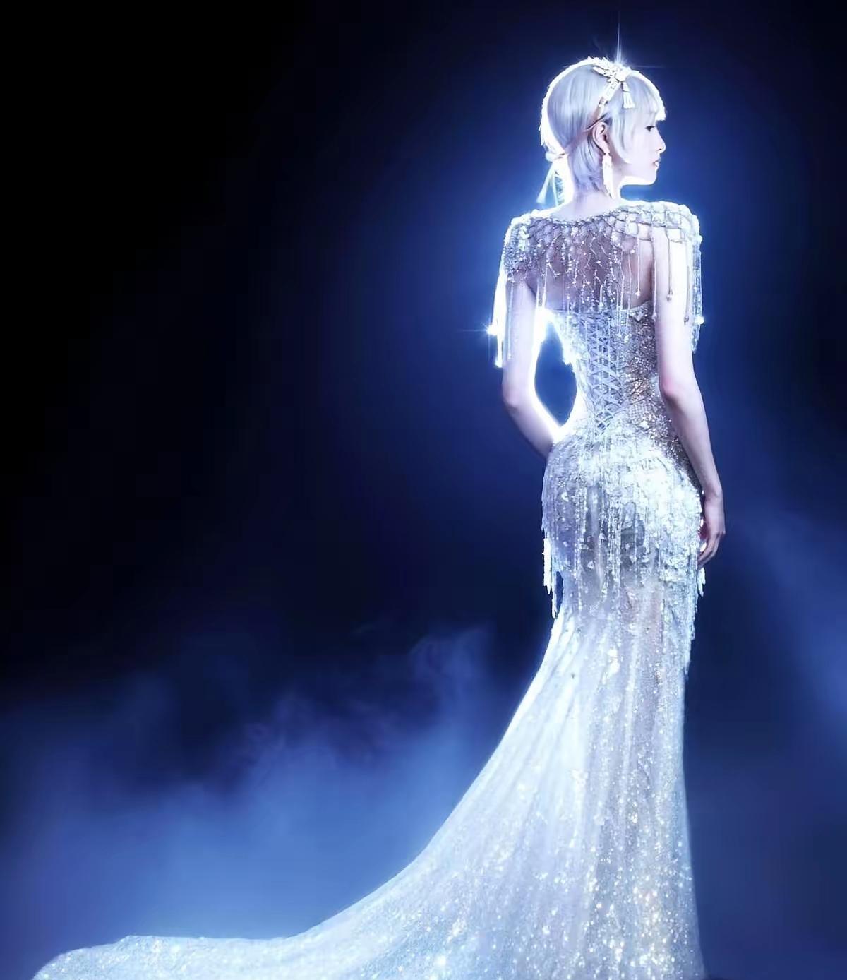 关晓彤, 这下终于扬眉吐气了! 这次在Prada的秀场上,关晓彤不再是那个怎么穿都不对味的精致土妞! 一头银色的头发,配上品牌方准备的碎钻裙,高挑的身材,纤细的腰身,活脱脱就像是从漫画书里走出来的公主一般,闪了多少人的眼睛! 这下终于懂了关晓彤之前为啥总穿不对了,原来她还是太保守了!一旦她大胆起来,就没有其他人什么事了!