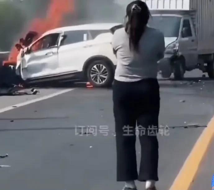 灭火器呢???视频截图网上,一辆着火的汽车,驾驶员卡在驾驶室内,喊声撕心裂肺,据说车内一男一女两个人,一排车堵停在路上,下来一众人议论纷纷,皆束手无策。 灭火器灭火器呢!!??谁的车上都带有水吧?放下手机,冲上去救人一命呀!!!不能眼睁睁看着人出不来,被活活烧死啊! 记得前几年检车,其中一项看看有没有带灭火器,近两年不检查这个了,好像大车要求携带灭火器。 我是交通参与者,车备箱备有灭火器(小型)定期更换,确保不时之需,如果跑长途还要备一桶20斤水,另带中型千斤顶,就是有备无患。 活生生的实例教训,提醒出行的人们“安全第一!”曾经说过——驾驶一辆车达到人车合一的里程一万公里,达不到你别去高速公路,更不要去挤免费的资源。 网上不断传来高速公路交通事故的消息,欲速不达的先例比比皆是,为什么一而再再而三? 多说一句:高速公路免费期间,安装大型灭火器,从收取的费用中拿出来一笔钱,每一段路放置几台大型灭火器…。