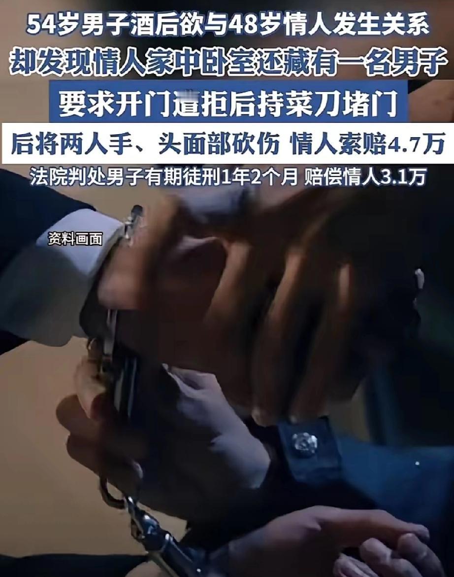 “真是冲动惹大祸!”这起湖南资兴的情感纠纷伤人案,看得人直唏嘘。54岁的谢某,酒后想和情人唐某亲热,电话里却听到有其他男人声音,便跑去唐某家,发现真有男子欧某躲在卧室。唐某拒不开门,谢某一气之下持刀堵门、威胁,还砍伤了唐某和欧某。最终,谢某因故意伤害罪被判1年2个月,还得赔偿唐某3.1万元。 这事儿让人感慨,感情里最忌讳的就是冲动和不信任。谢某因一时猜忌,就做出如此极端的行为,不仅伤害了他人,也毁了自己。唐某和欧某虽是无辜受害,但这场风波也提醒我们,对待感情要真诚,遇到问题更应冷静沟通,而不是用暴力解决。暴力不仅解决不了问题,反而会让事情变得更糟,甚至触犯法律,付出沉重的代价。 大家对这事怎么看呢?是觉得谢某太冲动,还是认为感情里就该有绝对的忠诚?快来评论区聊聊,一起说说你的看法吧!