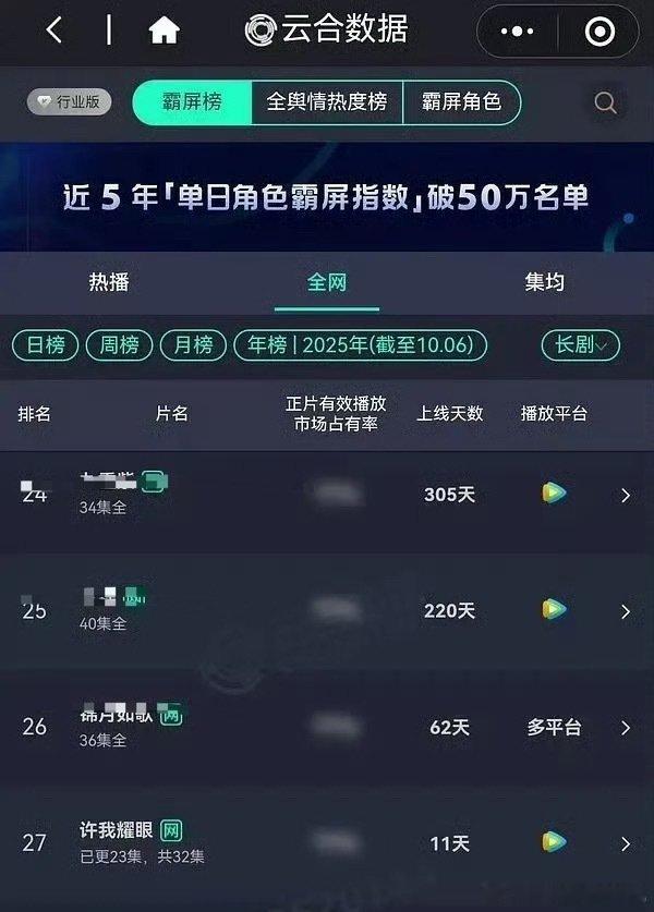 许我耀眼云合年榜许我耀眼开播11天云合年榜27