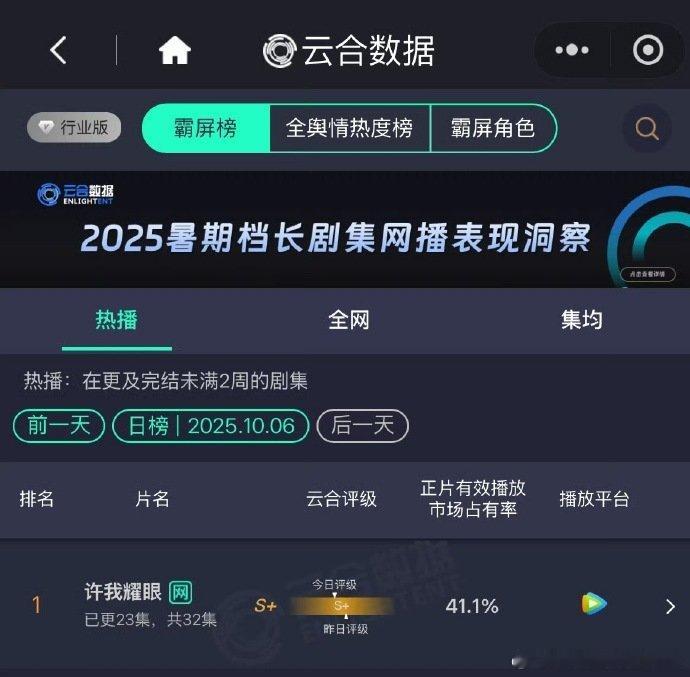 赵露思、陈伟霆许我耀眼云合年榜,开播11天空降云合年榜27,谁来懂一下这个新剧的热度啊,期待住许妍沈皓明接下来的故事啦~