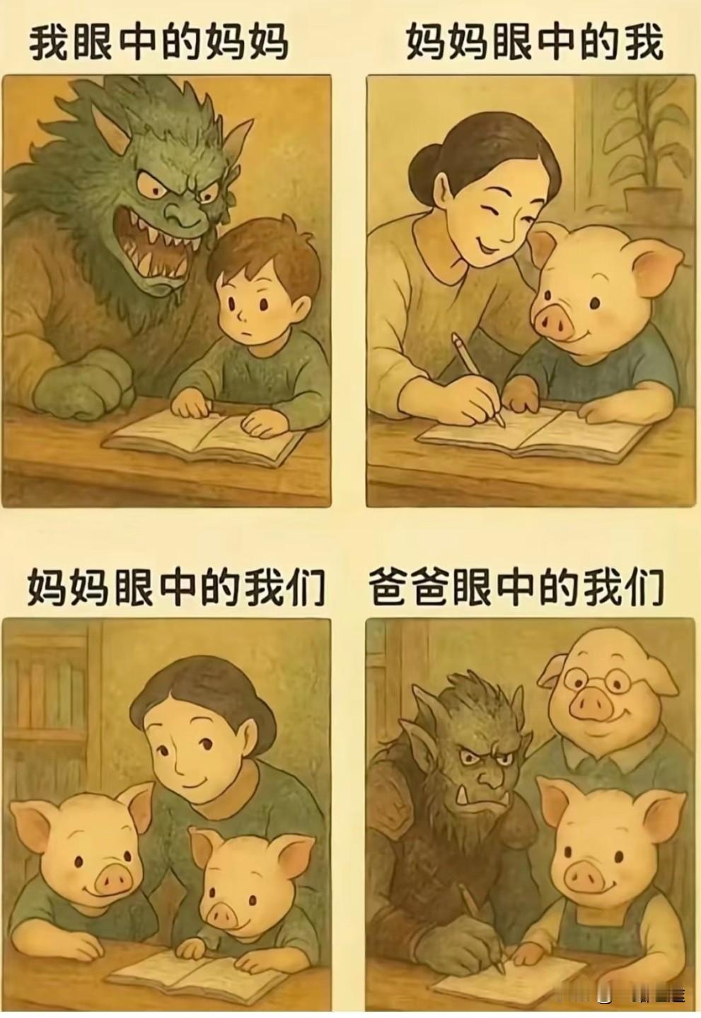 [捂脸][捂脸][捂脸] 教孩子做作业的我们VS孩子眼中的我们 写作业崩溃症 写作业带娃 娃对作业的肯定