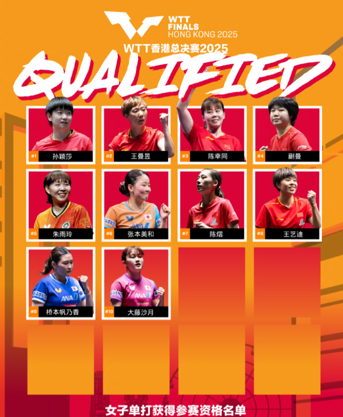 WTT世界乒联发布截至目前获得WTT香港总决赛2025参赛资格的名单,国乒多人获