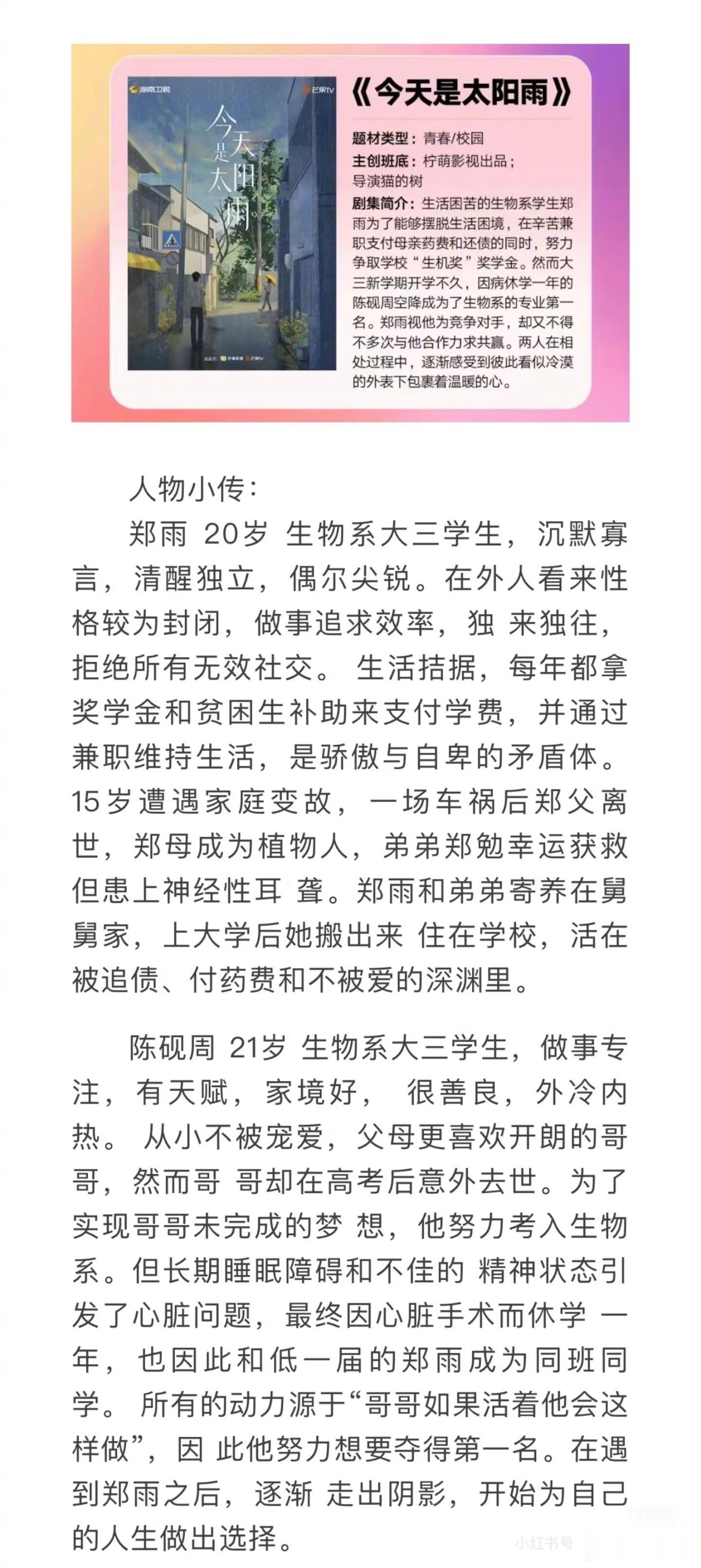 杨超越、董思成《今天是太阳雨》11月底广州开机,导演猫的树