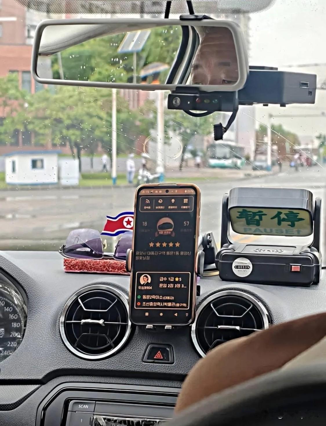 朝鲜出租车上的打车软件?朝鲜出租车司机把手机放在中控台上,手机上显示导航目的地,