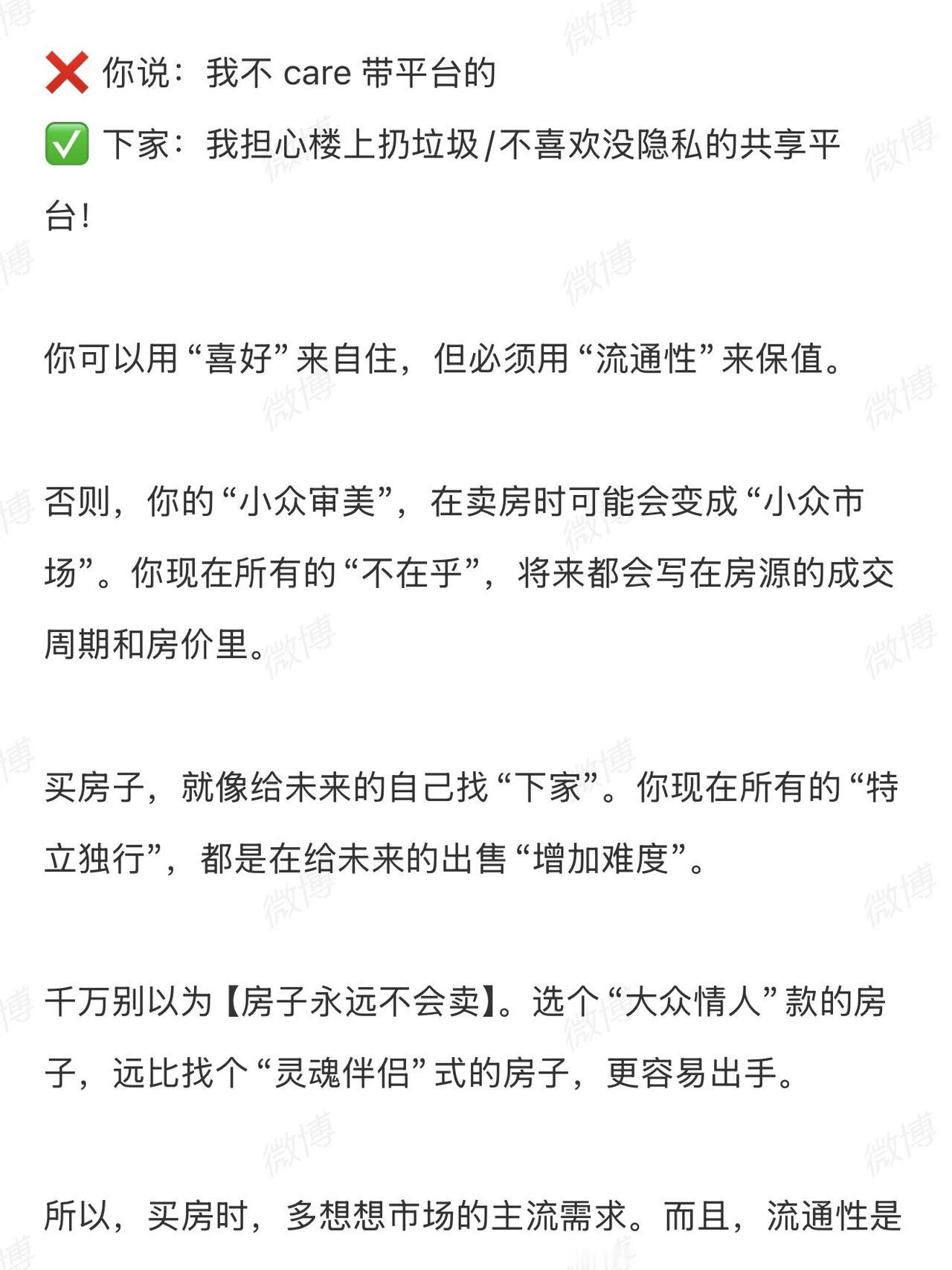有人说:“我不在乎学区/地铁/楼层,买个自己喜欢的不行吗?” 我说:“当然行,
