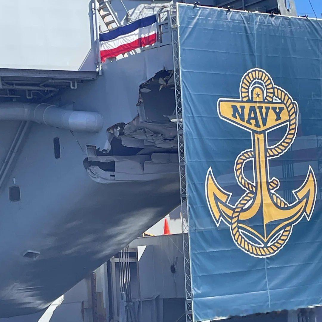 原来地中海撞船后,美国海军在8个月内对杜鲁门号航母进行的修复,就是对伤口喷了一遍油漆