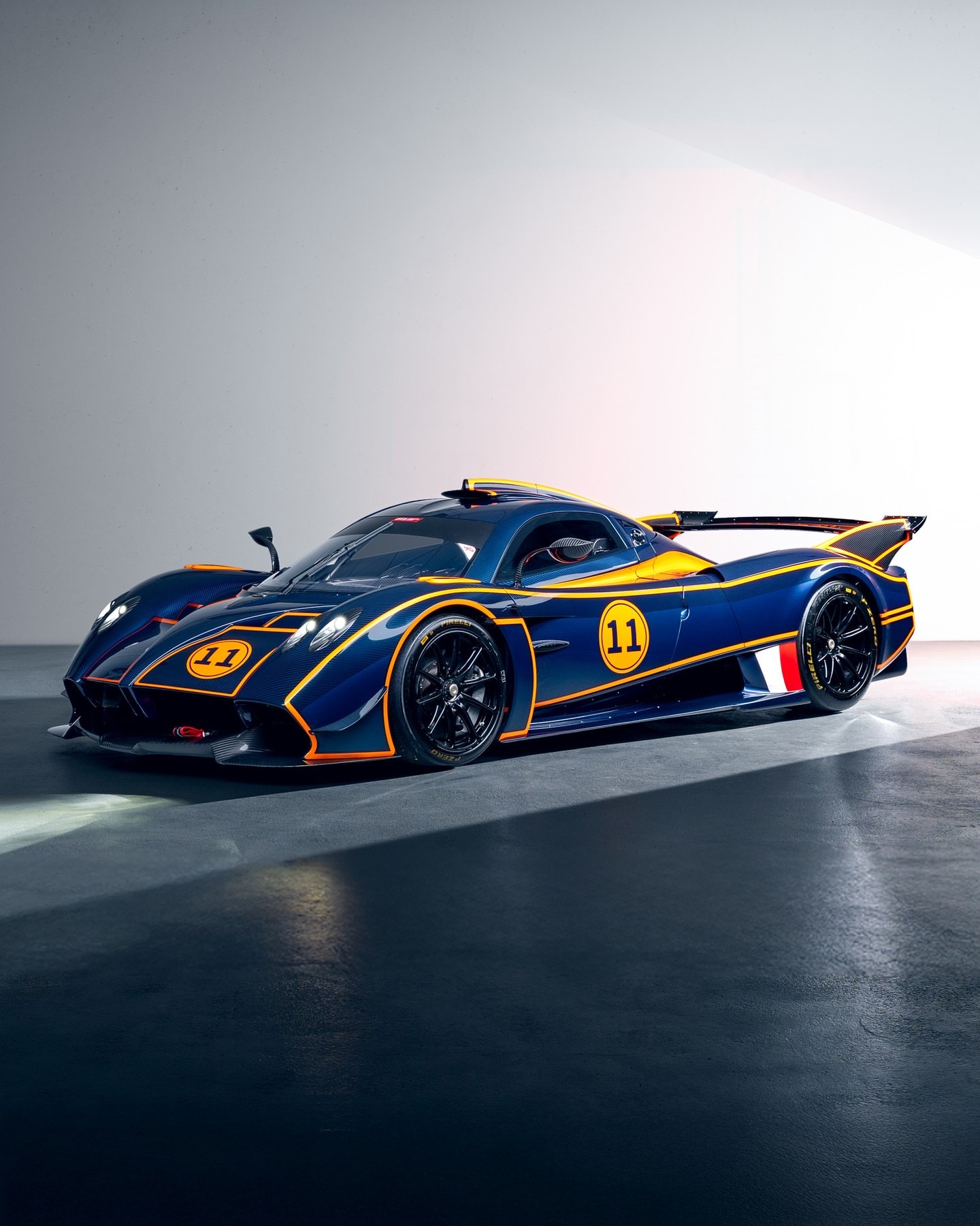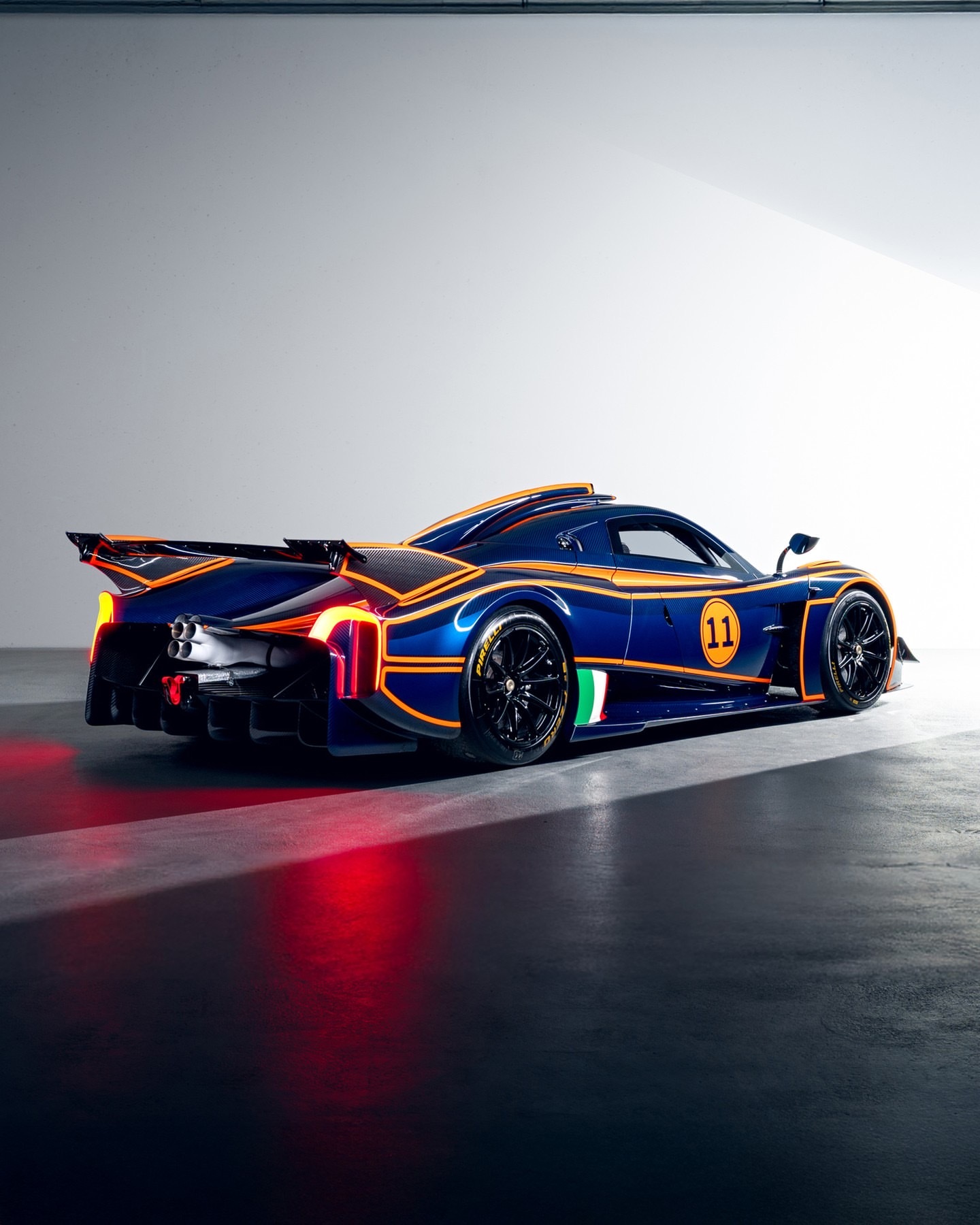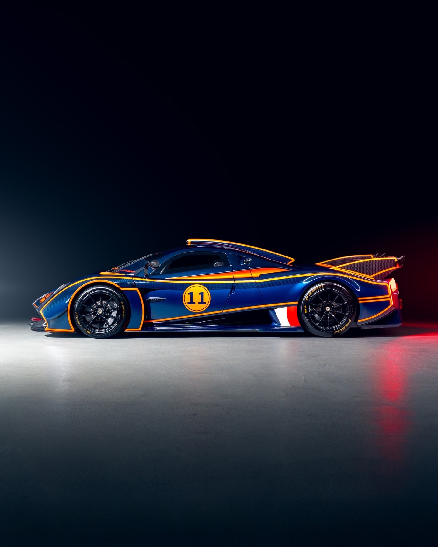 这款,编号为30辆中的第11辆,由The Tailored for Speed Collection全新委托定制,采用三种颜色的涂装——蓝色多瑙河、蓝色阿维奥和橘色马拉贝拉,整体覆盖全碳纤维。其定制规格使原始价格额外增加了30万欧元以上。重量仅为1050公斤,在320公里每小时的速度下产生1000公斤的下压力,Huayra R不仅速度快,更是一场盛事。