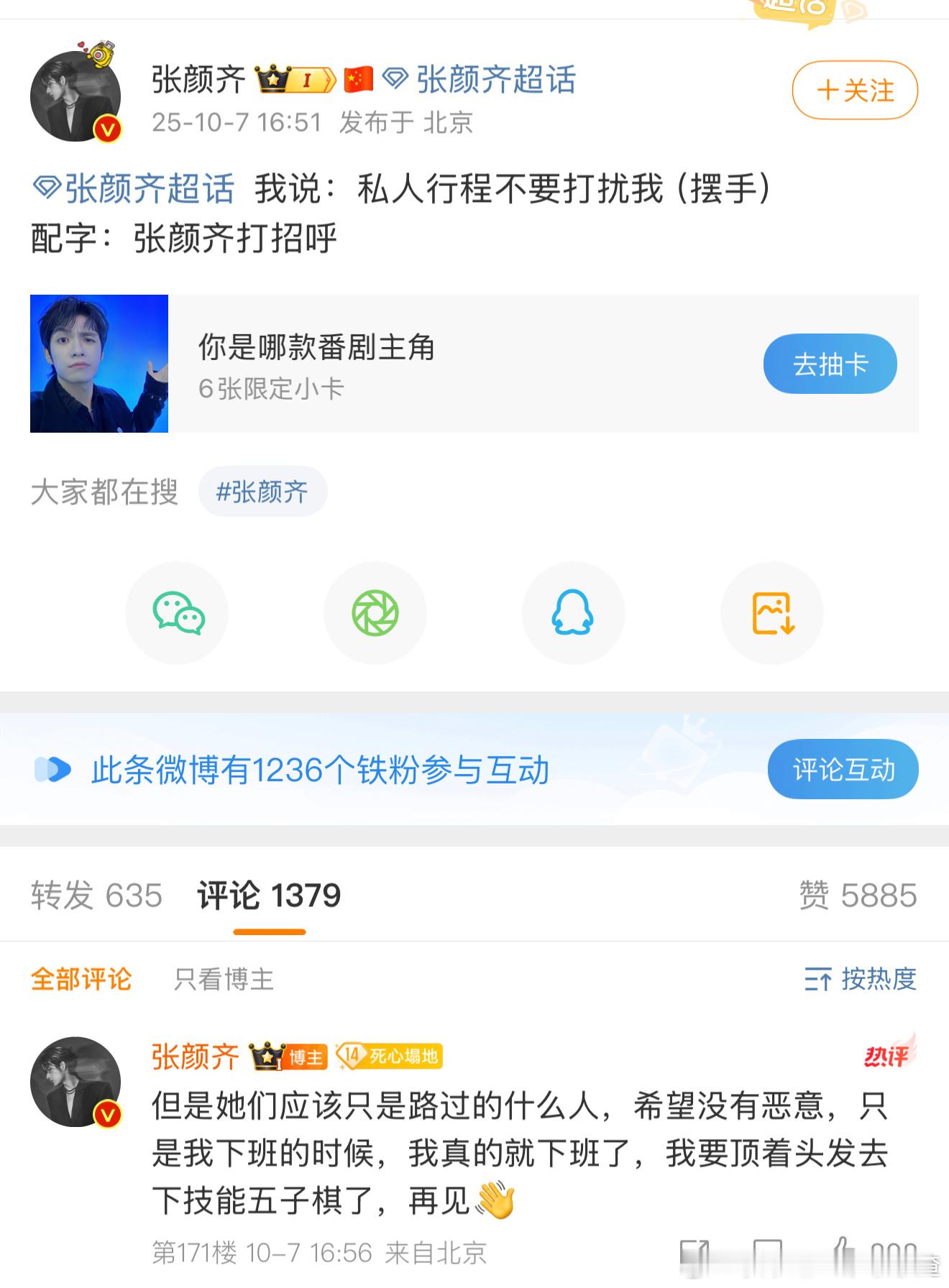 张颜齐:私人行程不要打扰我(摆手)