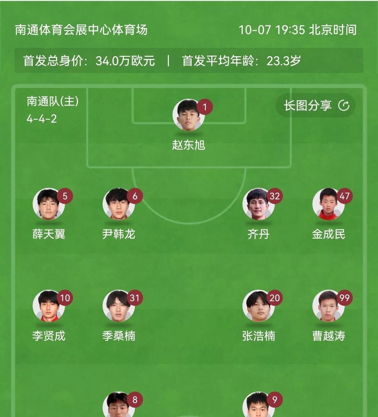 今晚苏超南通队首发出炉,果真是变阵了!21号郭凯楠第一次没有首发,9号黄蒋大亚从后卫变成了前锋。4个中场全部具备突破能力,442阵型比原来的433要稳很多。结果如何,拭目以待!#南通生活微瞬间#
