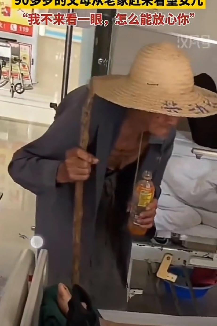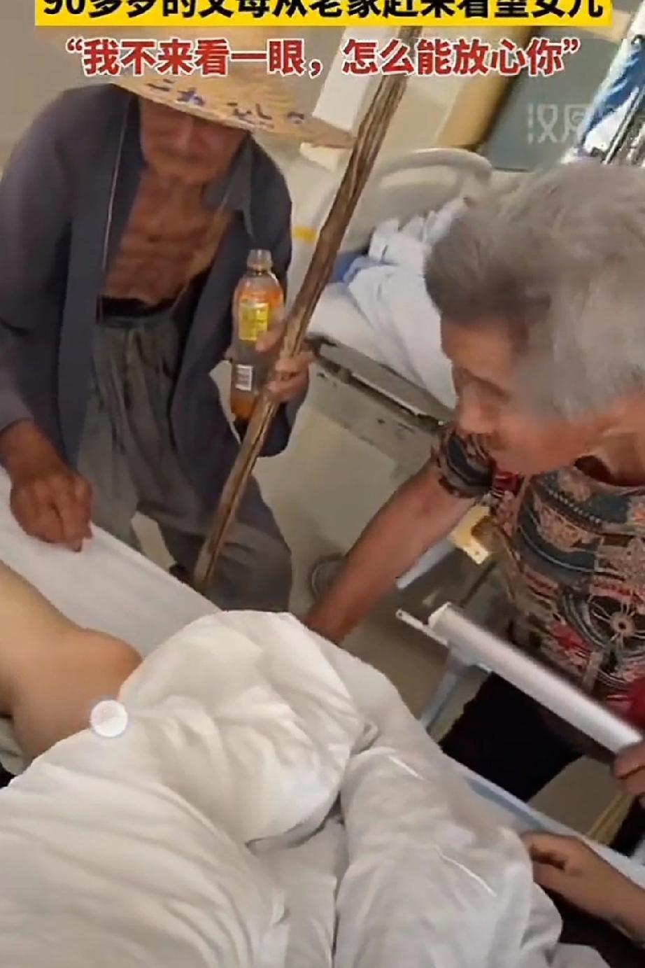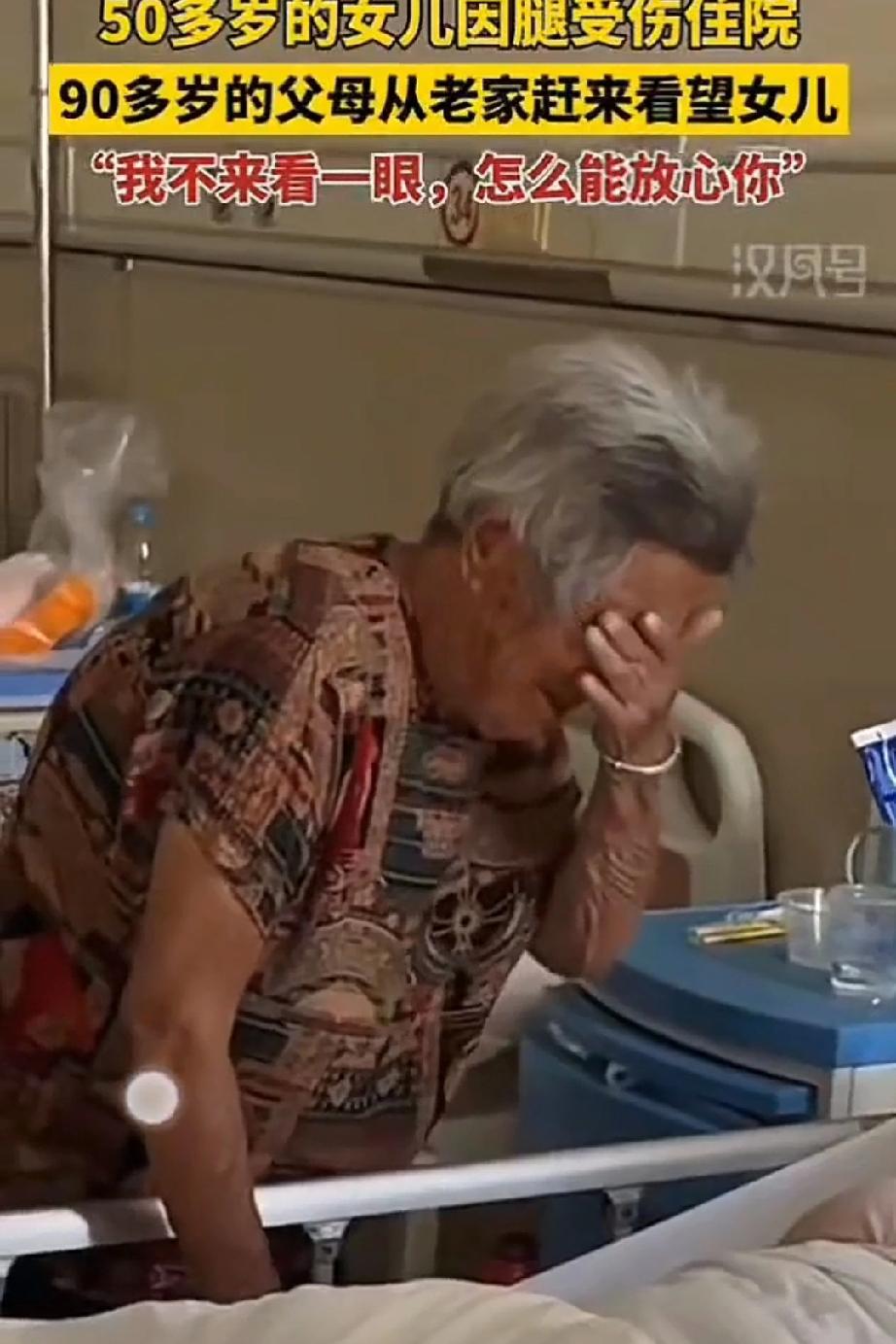 50多岁的女儿因小腿受伤住院,90岁的父母从老家赶来看望女儿!看到女儿趟在病床露