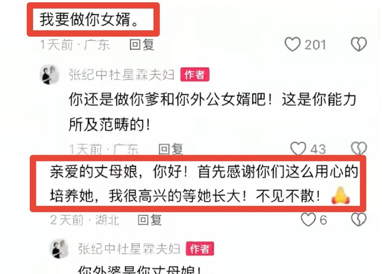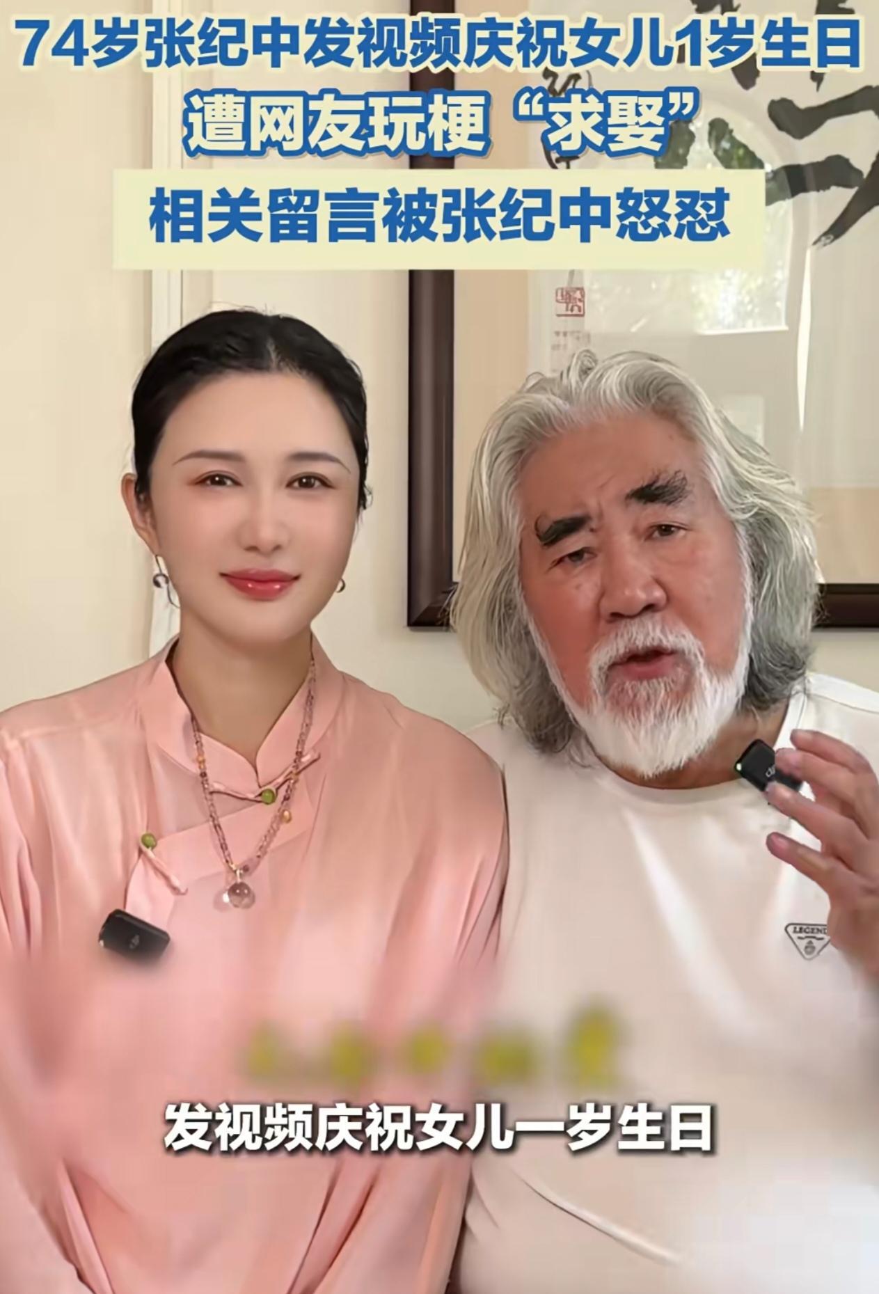 张纪中也没想到,8年前发射的“子弹”,宛如一记回旋镖,穿越时空,击中了如今的自己。 2017年,张纪中与樊馨蔓感情破裂,扭头便娶了身旁的小助理,便是1982年出生的杜星霖。二人相差31岁,引发外界热议,大胡子导演也就此成为内娱老夫少妻、老当益壮的典范。 当初,外界都不太看好这对组合,认为不过一个好色、另一个贪财罢了。如今,8年时间过去,杜星霖并没有如外界所说一般,二人感情如胶似漆,一口气生了四个娃。如此响应政策,张纪中倒是内娱第一人,许多90后、00后都自愧不如。 不过,最近张纪中遇到了“糟心事”。他最小女儿即“小龙珠”年满一周岁,张纪中夫妇发布视频替女儿庆生,遭遇网友“调侃”。有网友戏称,“要当他的女婿”,也有网友直呼,“亲爱的丈母娘,你好!首先感谢你们这么用心培养她,我很高兴的等她长大!不见不散!”此举,直接惹恼了张纪中,直接在评论区回怼,言辞甚激烈。 讲实话,张纪中怼网友很正常,也该怼,甚至可以追究其法律责任,作为一名父亲,替女儿抗风挡雨是本分,这些网友的评论着实有些“过火”,不该对一位婴儿“出口成章”。毫无疑问,维护网络和谐是每一位网民的责任,但我也 相信,这些网友本意并非如此,他们大抵是想讽刺大胡子导演的“老夫少妻”罢了,毕竟张纪中31岁时,杜星霖也不过才刚刚出生。 这位74岁少年,在追寻爱情与美满家庭的路上,算是一去不复返。头发胡子都花白了,还得玩儿命挣钱,一家六口全都指望着他呐。没办法,年龄到这份上,也没人找他拍戏,只得腆着老脸钻研直播带货,利用年轻时攒下的人气,再捞一波。 平日里,他早上五点多就得起床,锻炼身体,还得做早饭、送娃念书,白天还得工作,或者陪妻子直播,有时候得忙到深夜。年轻人估计都不见得螚吃消,更何况年过古稀的老头子,以至于他经常在直播中便昏头大睡。嘴硬归嘴硬,身体机能日渐下滑,张纪中比谁都清楚,他必须得抓紧时间了:现在不抓紧时间挣钱、陪家人,更待何时? 说来惭愧,咱们年轻人不见得有她这股子拼劲。革命尚未成功,各位仍需努力呀!
