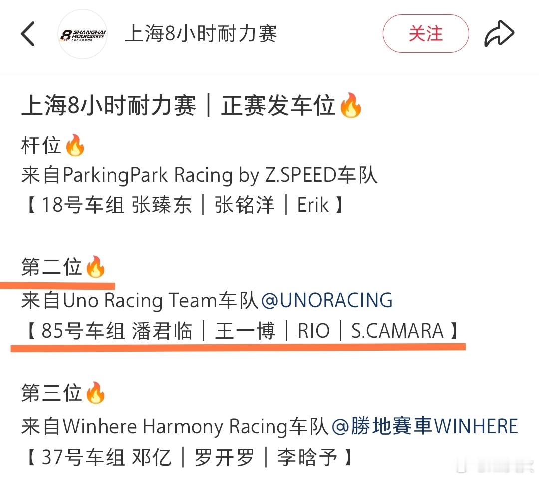 [好爱哦][好爱哦][好爱哦]恭喜王一博85号车组今天的排位赛拿下全场第二!明天85号车组正赛发车位第二位!!太牛了啊啊啊