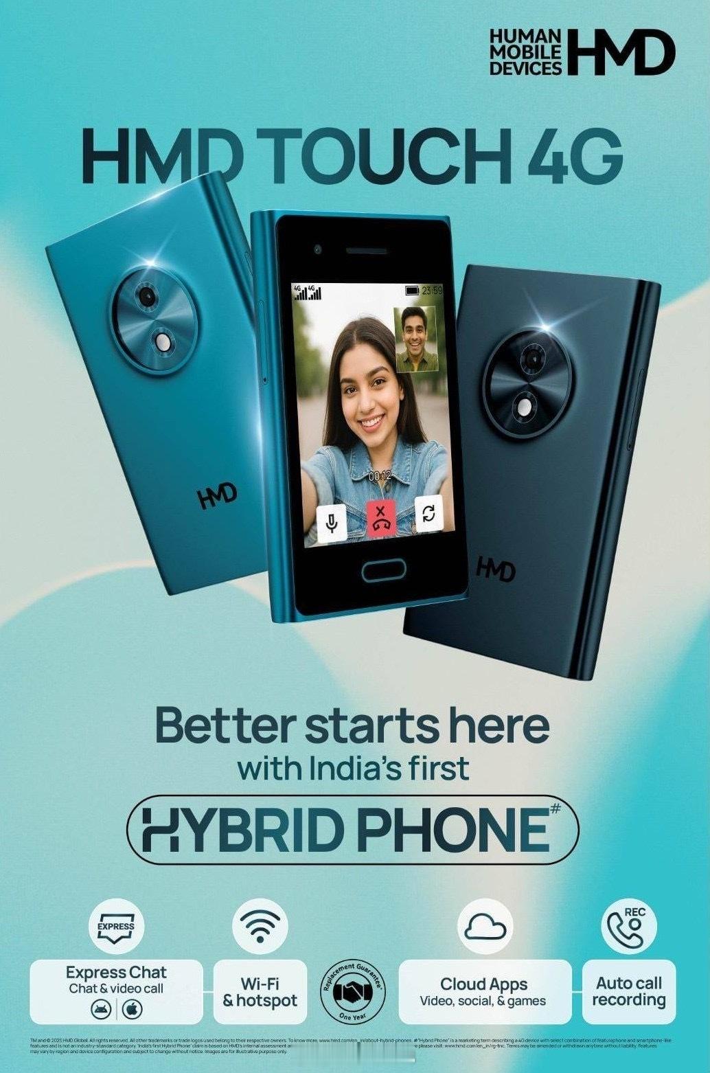 HMD 在海外出了款功能机,叫 HMD TOUCH 4G,外观造型上有点 Lumia 手机的感觉了。