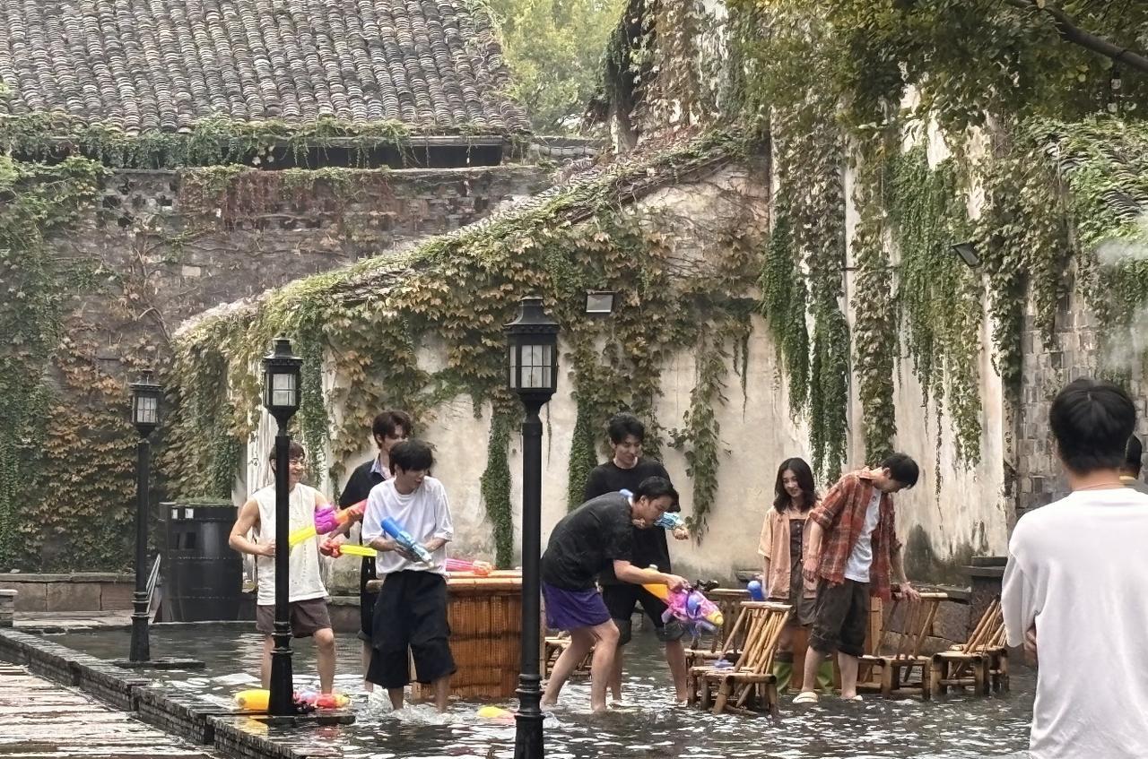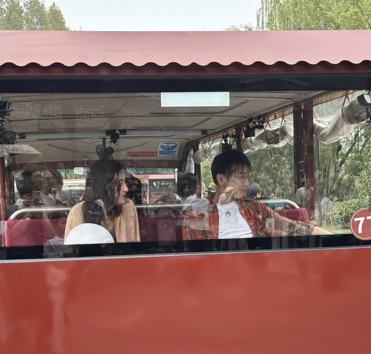 10月7日,有位网友在乌镇偶遇明星综艺拍摄,何炅、张子枫、彭昱畅等明星。 何炅骑