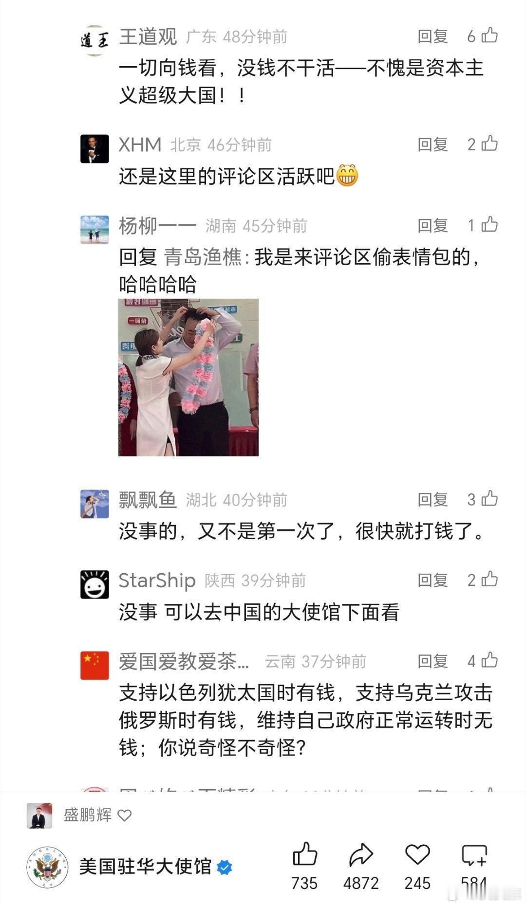 美国驻华大使馆发文:由于拨款问题未决,除紧急的安全和安保信息外,此账户将不会定期更新,直至恢复全面运作。