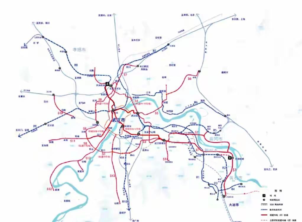 武汉地铁藏着市域快线?改名争议背后竟通鄂州黄冈。 最近翻朋友圈老看到有人说武汉没市域铁路,这让我有点懵。原来咱们武汉现在运营的地铁线里还真藏着不少其实属于市域铁路的线路,虽然名字里没“市域”俩字。拿21号线阳逻线来说,从后湖跑到阳逻,全程35公里,设计时速100公里,这哪是什么普通地铁啊? 像16号线直接开到了汉南通航产业园,时速飙到120公里。还有刚开通的前川线,从市中心跑到黄陂前川,这路线长度都够得上城郊快线了。最让人没想到的是,连新规划的20号线都改成S4线了,直接连着武汉站和天河机场。 市里搞了个新港线原本叫34号线,现在也改成S6线了。邾城线变成S5线,鄂州黄冈方向的新城快线也在建。这些线路走的路线基本都在市区和郊区之间,运行速度又比普通地铁快,明显就是市域铁路的功能。但因为名字里没“S”开头,好多人都以为武汉没发展这个。 听说以后还要修条从天河机场到鄂州花湖机场的专线,终点还要往孝感闵集方向延伸。麻城那边的老铁路也要改造成能跑红安的市域线。光看地图上的规划,武汉周边未来的轨道交通网绝对不输给南京杭州,就是卡在一个名字上被误解。 最搞的是,现在在建的线路改名速度很快。比如19号线虽然还没通车,但大家都知道时速120公里肯定是市域线标准。网上有不少武汉市民说,以前总觉得南京杭州有优势,其实咱们早就在默默搞了。不过要等到这些线路全贯通,少说也得好几年。 规划图上看,往后武汉的轨道线路越来越往周边城市伸,鄂州黄冈的人也能乘着这些快线来武汉上班。但名字这块儿的历史问题,可能还要再等新线全部改完才能彻底解决。反正我感觉,等全部建成之后,再争论有没有市域铁路就没意思了。