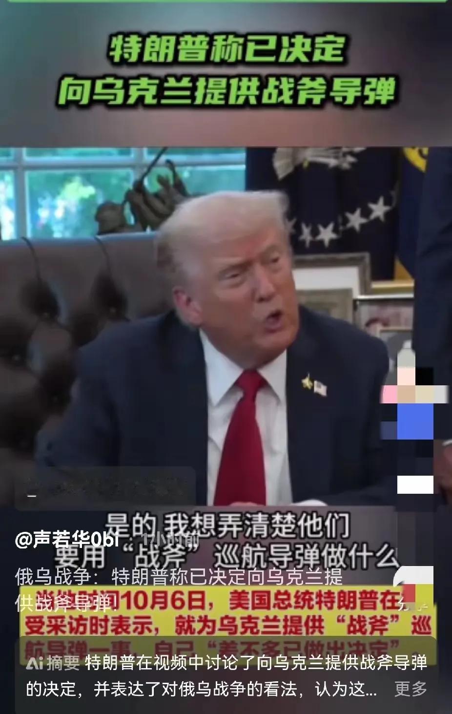 特朗普与普京之间的友谊小船估计要翻了。 特朗普已答应向乌克兰提供“战斧”巡航导