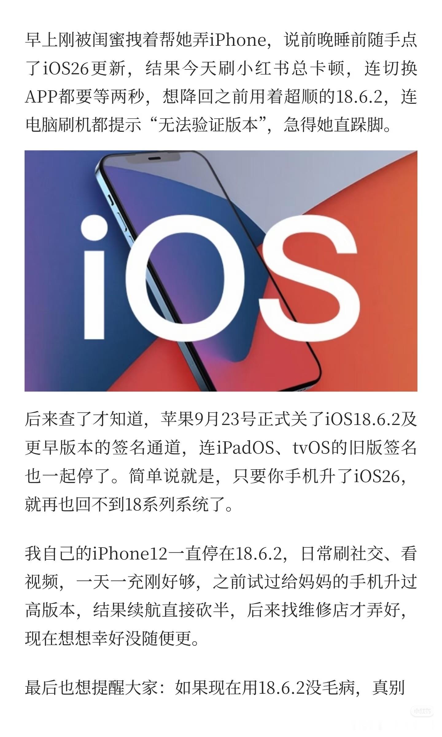 同步关闭 iOS 18.6.2 验证通道,升了无法降了[doge]