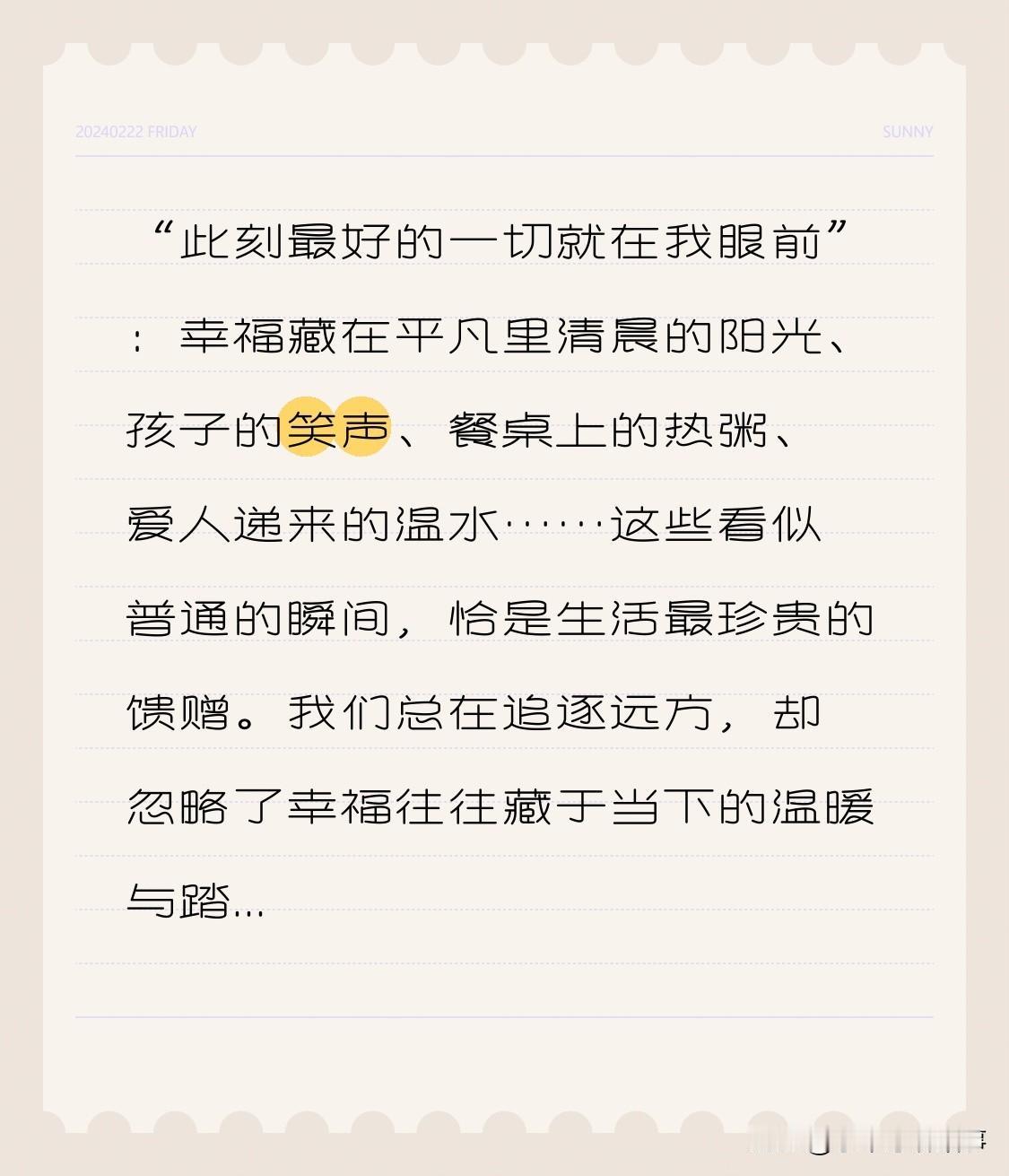 惊呆!“此刻最好的一切就在我眼前”:幸福藏在平凡里 清晨的阳光、孩子的笑声、餐桌上的热粥、爱人递来的温水……这些看似普通的瞬间,恰是生活最珍贵的馈赠。我们总在追逐远方,却忽略了幸福往往藏于当下的温暖与踏实中。它不在遥不可及的未来,而在此刻的烟火气里:父母的一句叮嘱,朋友的一次相聚,甚至独自发呆的片刻宁静。学会珍惜眼前,方知生活本味。你此刻感受到的“最好”,又是什么模样?