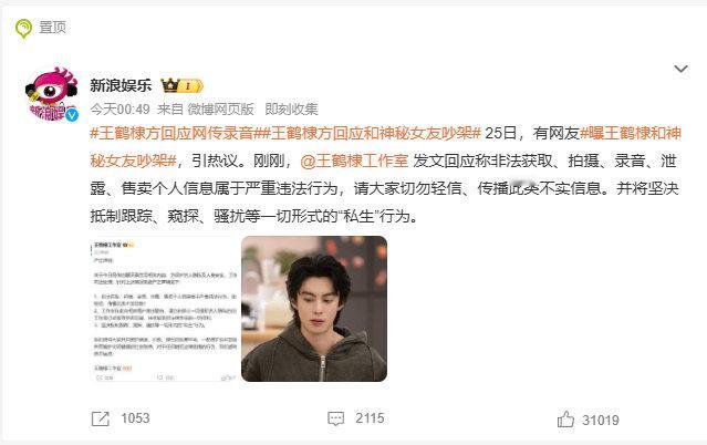 曝王鹤棣和神秘女友吵架王鹤棣方回应网传录音