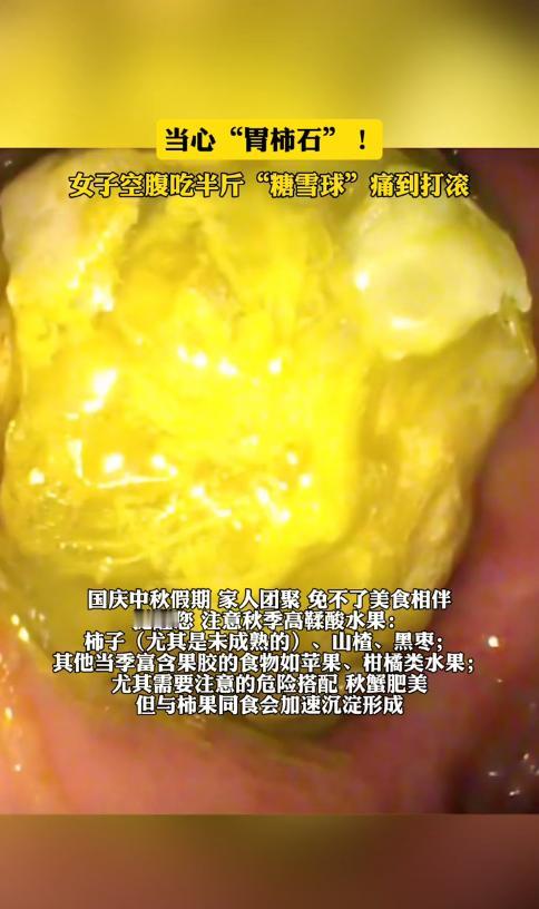 悲剧还是发生了!6日报道,陕西西安,一女子因嘴馋,一次性吃了半斤多的“糖雪球”,结果突然感觉肚子传来剧烈的疼痛,疼得她直打滚,女子立即前往医院检查,被确诊为“胃柿石”,胃里面长了一块坚硬的“石头”!网友:柿子和山楂都不能吃太多。 国庆假期正是柿子、山楂大量上市的时候,这些应季水果虽然好吃,但吃不对也会出问题,最近就有位女士空腹吃了半斤多糖雪球,结果肚子疼得受不了,去医院一查竟然是胃里长了“石头”。 这种情况在医学上叫“胃柿石”,听起来有点吓人,其实原理不复杂,柿子和山楂里都含有大量鞣酸,空腹吃的时候这些鞣酸会和胃酸碰上,发生化学反应生成一种不溶于水的沉淀物,这些沉淀物就像滚雪球一样,把胃里的食物残渣、果胶啥的都粘在一起,时间长了就结成硬块了。 除了柿子和山楂,黑枣也容易引起这个问题,很多人以为黑枣就是枣的一种,其实它属于柿树科,鞣酸含量也不低,这三种水果都好吃,但吃的时候得注意方法。 要是吃完柿子或山楂之后,肚子开始疼、胀气、想吐,就得留个心眼了,小的结石可能就是有点不舒服,但大的结石可能导致胃溃疡,严重的甚至会造成消化道梗阻或穿孔,万一出现剧烈腹痛、吐个不停、拉不出来或者便血,那得赶紧上医院。 看到这个新闻真是隔着屏幕都感觉胃里一沉!半斤糖雪球,这姐妹儿也太实在了,这是把山楂当饭吃了啊,估计当时就觉得酸酸甜甜开胃又好吃,没想到后劲这么大,直接给胃里“装修”了块石头。 “妈呀,我上周刚干完一袋糖葫芦!看完赶紧摸了摸肚子,现在感觉看啥都像‘结石预备役’了。以后可真得管住嘴,这玩意儿再好吃也不能这么造啊。” “同是天涯沦落人,去年我就是空腹吃了几个柿子,然后胃胀难受了好几天,去医院查说是小的胃石,喝了几天可乐给溶掉了,医生说幸好发现早。大家真的引以为戒!” “重点不只是山楂和柿子本身,是‘空腹’+‘大量’这个组合拳!鞣酸遇到胃酸,再碰上蛋白质(比如新闻里提到的螃蟹,还有牛奶、鸡蛋啥的),简直就是胃石的‘完美配方’。 记住口诀:不空腹、不过量、不和高蛋白同吃。” “提醒一下,除了鲜山楂和柿子,山楂糕、柿饼这些加工品也得注意,特别是肠胃本身就不太好的朋友,还有老人和小孩,消化能力弱,更容易中招。” “我可太有发言权了!之前就是晚饭后吃了好几个柿饼,当晚就疼得直不起腰,去医院胃镜取出来的,那滋味这辈子不想体验第二次,大家千万别抱侥幸心理,觉得‘我就吃一点没事’。” “看来不止我一个‘大冤种’,医生当时跟我说,如果吃完感觉胃胀、隐隐作痛,别硬扛,早点去医院,小的结石可能喝点碳酸饮料或者用药就能解决,拖久了变硬了可能就得做胃镜甚至手术了。” “其实也不用过度恐慌,关键是科学食用,成熟的甜柿子、经过脱涩处理的,鞣酸含量就低很多,关键是别在饿得前胸贴后背的时候把它们当‘开胃菜’,饭后适量解个馋一般问题不大。” “感觉现在很多时令美食都成了‘健康刺客’,板栗和山楂一起吃也有案例。说到底还是老祖宗那句话靠谱:凡事有度,过犹不及。” 你有没有因为贪吃某种美食而“乐极生悲”的难忘经历?或者你在吃柿子、山楂这类水果时,有什么独家安全小妙招?一起来评论区分享一下吧! 信源:陕视新闻