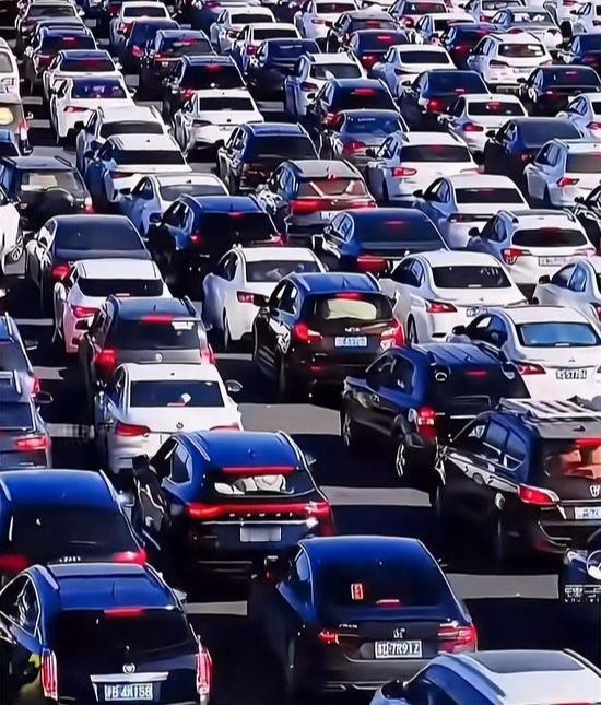 10月7日的高速上,车流像被按下慢放键。红色尾灯连成流动的星河,从车窗里望出去,