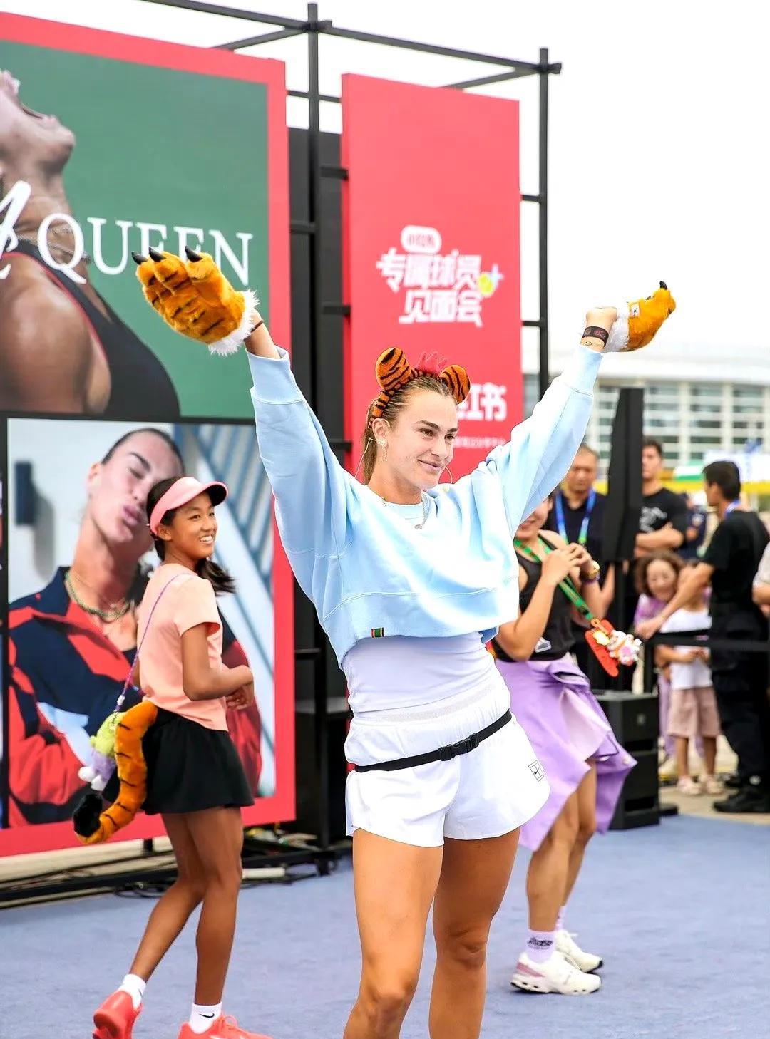 武网主办方真会整活! 刚安排完“炒皇”做“炒饭”,这不,又安排“虎妞”和粉丝们来一场“专属见面会”。 头戴老虎发箍,手上还套着“老虎爪”,虎妞的造型太可爱了。 童心未泯的虎妞一点也不扭捏,笑容灿烂,大大方方摆pose,和大家玩得很嗨。 尤其是她戴上狮子头的样子,太萌了,连小朋友们都被逗笑了。 #新锐创作者成长计划#