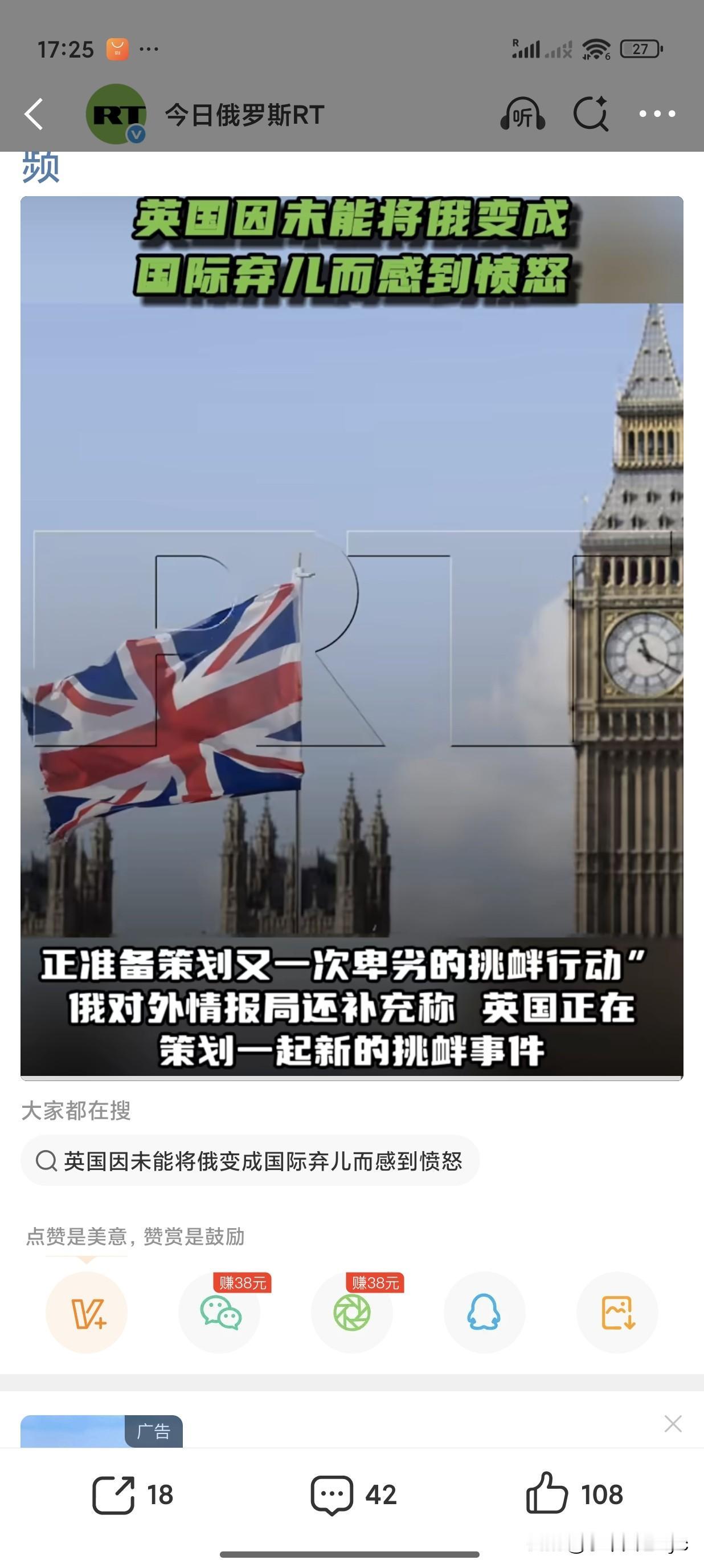 俄罗斯对外情报局新闻处表示,英国因其多年来试图让俄罗斯遭受“战略性失败”并将其变为“国际弃儿”的努力彻底失败而感到愤怒。 RT据此报道,“英国试图挑拨并让主要世界强国相互对立。” 俄对外情报局还补充称,英国正在策划一起新的挑衅事件,计划让一群在乌克兰武装部队作战的“叛国俄罗斯人”袭击欧洲的一艘民用船只,以嫁祸俄罗斯。 俄乌战火燃起,英国“功不可没”。当初拜登年老体衰,出力的都是英国前首相鲍里斯约翰逊。终于联手促成了俄乌战争。目的很明确,就是要通过对炮灰泽连斯基鼎力支持,战胜俄罗斯,即使不能战胜也要将其拖垮。西方这个目标正在一步步接近。 俄罗斯需要清醒的认识到,这场战争靠的是老本打的,老本总会有吃完的时候。俄罗斯要清醒认识到与世界一流科技国家的巨大差距。长期耗下去正随他人所愿,而自身巨大的国力消耗,军人生命的代价,都会影响社会的稳定和国家的有效管理。