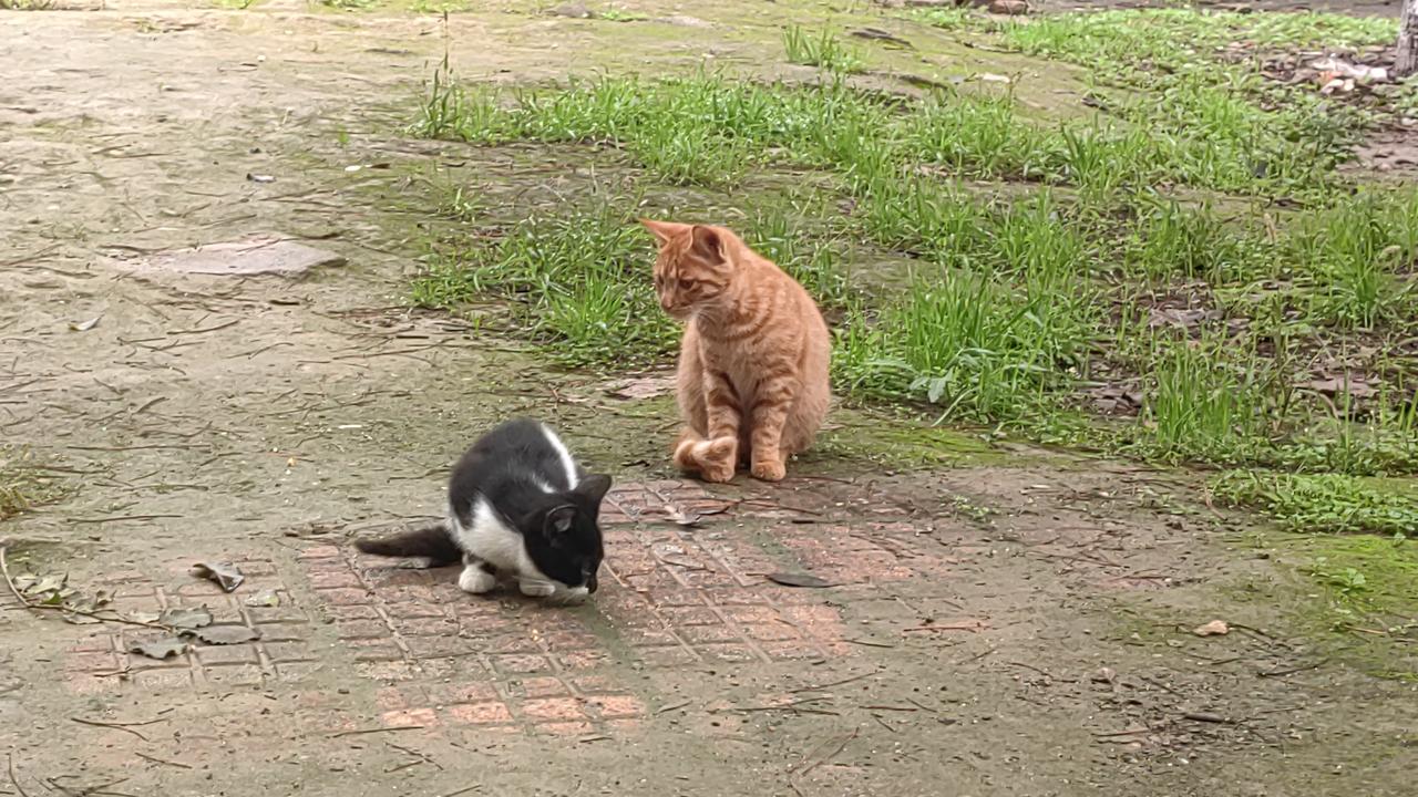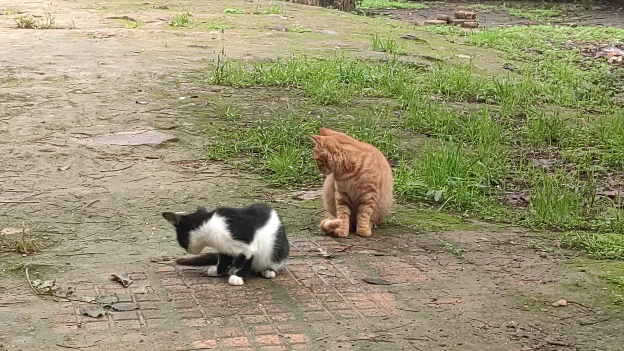 今天在西安灞桥区纺织城公园溜达,一下子碰到了三只流浪猫,两只橘猫和一只奶牛猫。它