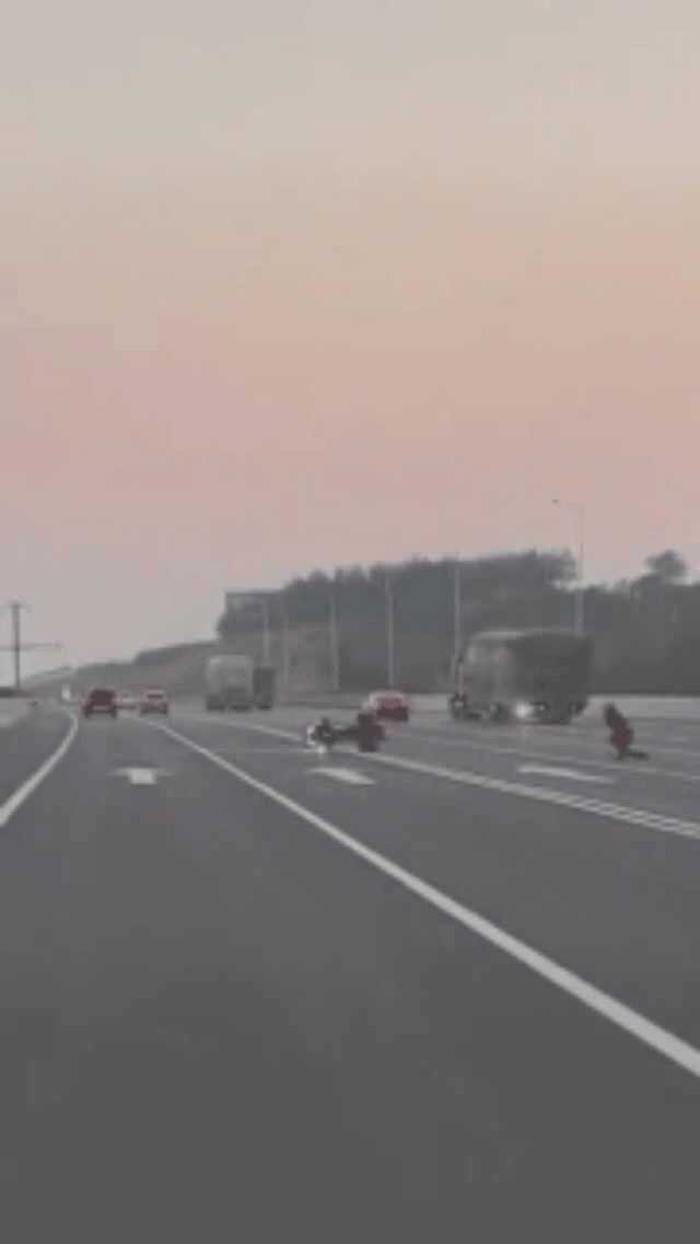 肇事逃逸太不应该了!无论谁的对与错,小车必须停下来,否则就有大责任,摩托车的责任是另一个问题。另外,不支持摩托车上高速,太危险!