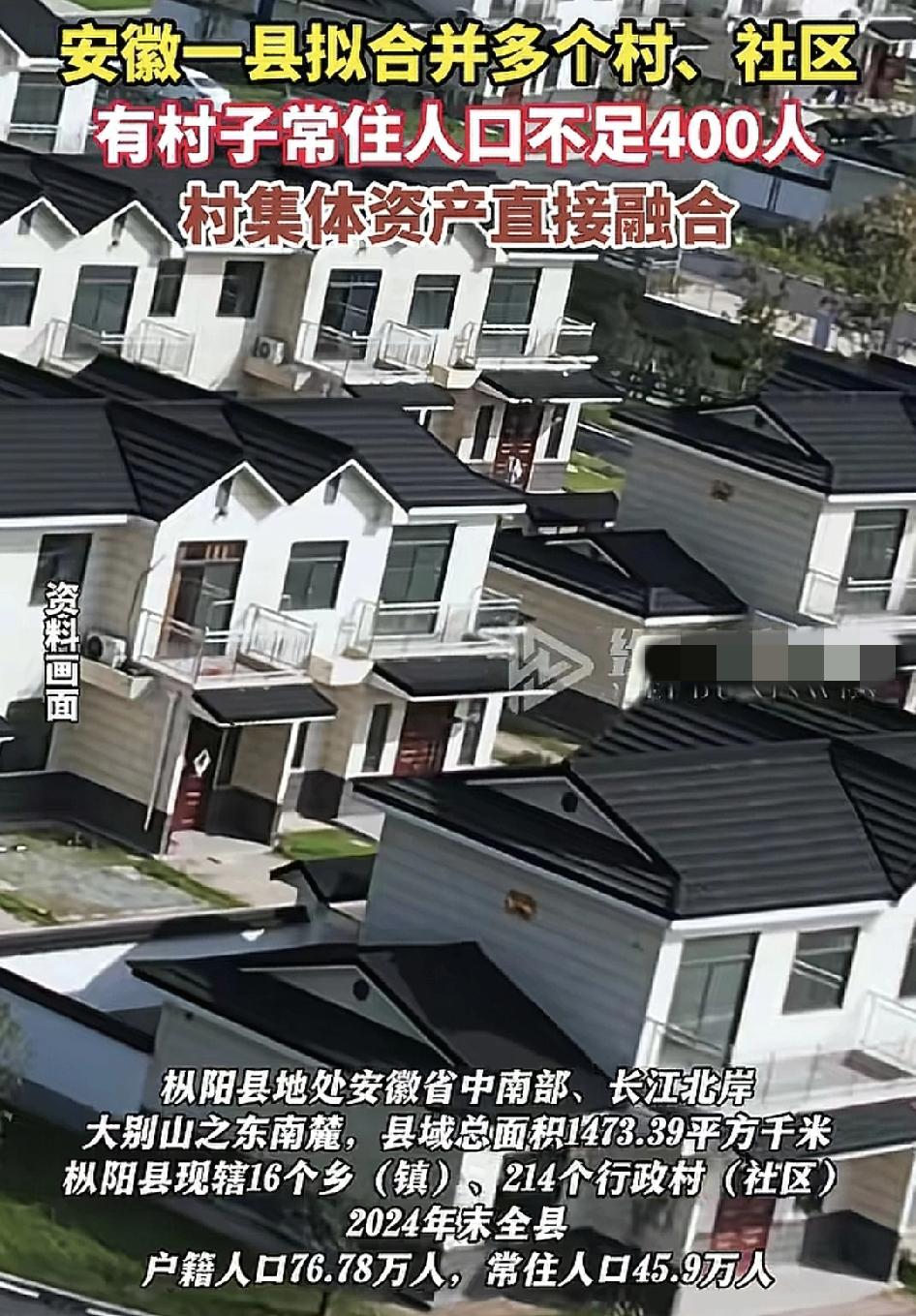 安徽一县拟合井多个村、社区有村子常住人口不足400人,村集体资产直接合。很多网友发纹身,如果一个村有400人,真的是一个大村子了,在很多地方包括沿海地区,有一些偏远的山区,村子已经凑不齐一百个人 。人口出生率降低,以及人口不断的向往大城市,导致了这些农村人口越来越少,学校合并,村子合并都是未来的一大趋势。