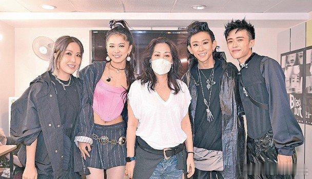 當日身穿白色上衣襯牛仔褲,長髮披肩,戴上口罩的她,雖然遮了半張臉,但化了眼妝,看落狀態不錯,而她更坐足全晚,聽到後輩翻唱其經典合唱歌《萬福瑪利亞》時,不時點頭似表示滿意,完騷後她還專程到後台和4位年輕人合照,更開金口送上鼓勵:「繼續努力,唱好音樂。」令一眾後輩受寵若驚。