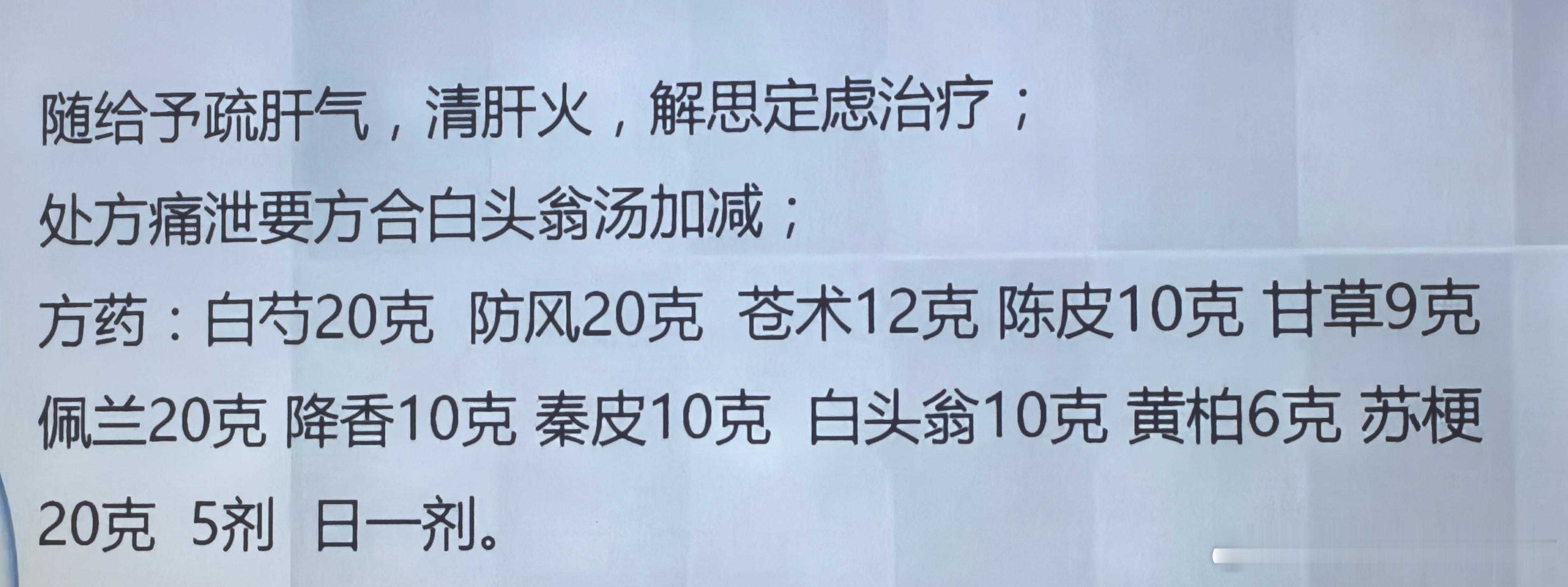 这个病例很好,80岁的老爷子,常年大便稀,一天五六次,能吃能喝能睡,根据脉象的厚、粗、热、滑,断为肝郁化火,予痛泻药方合白头翁汤