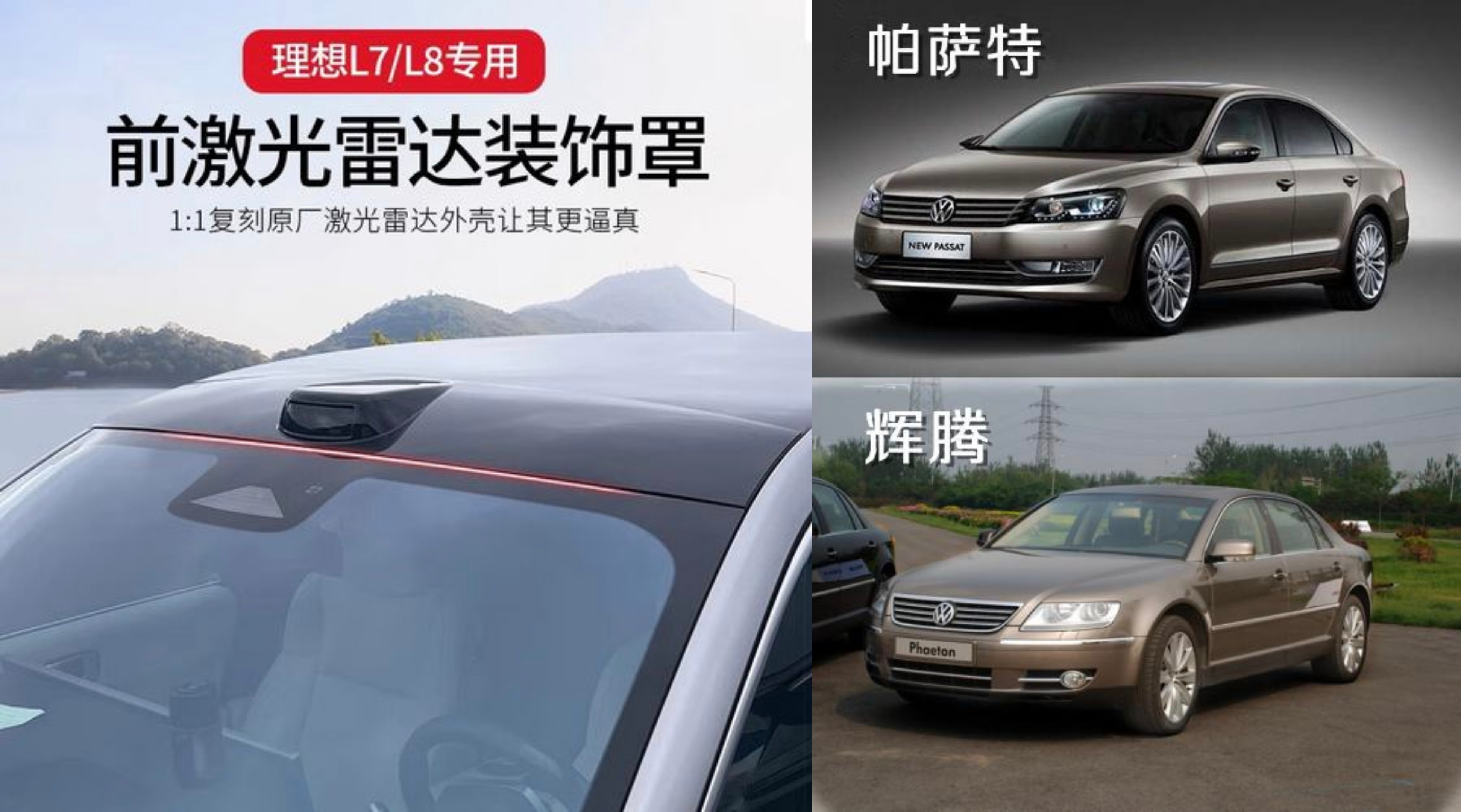但外观就不一样了,买低配汽车的消费者,最怕被别人认出来自己买的是低配,所以才会有激光雷达装饰罩子这种市场。
