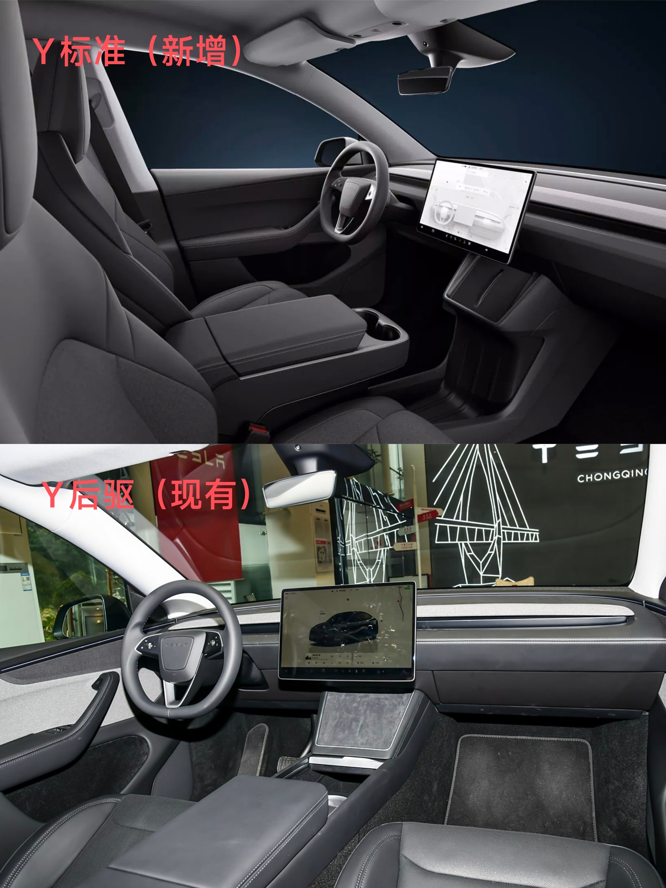 内饰也同理,modelY新增的标准版把中控扶手改成了挖空设计。
