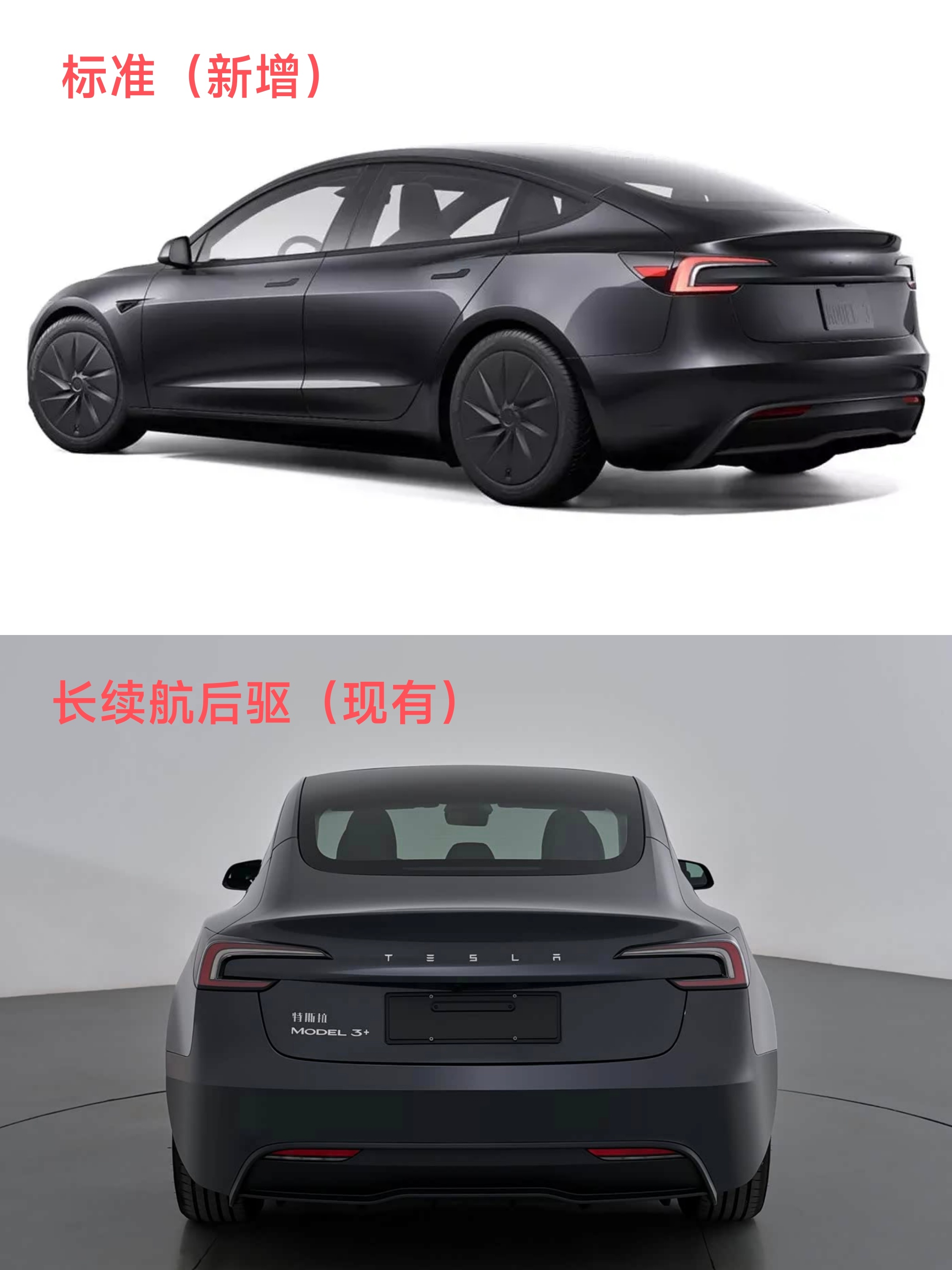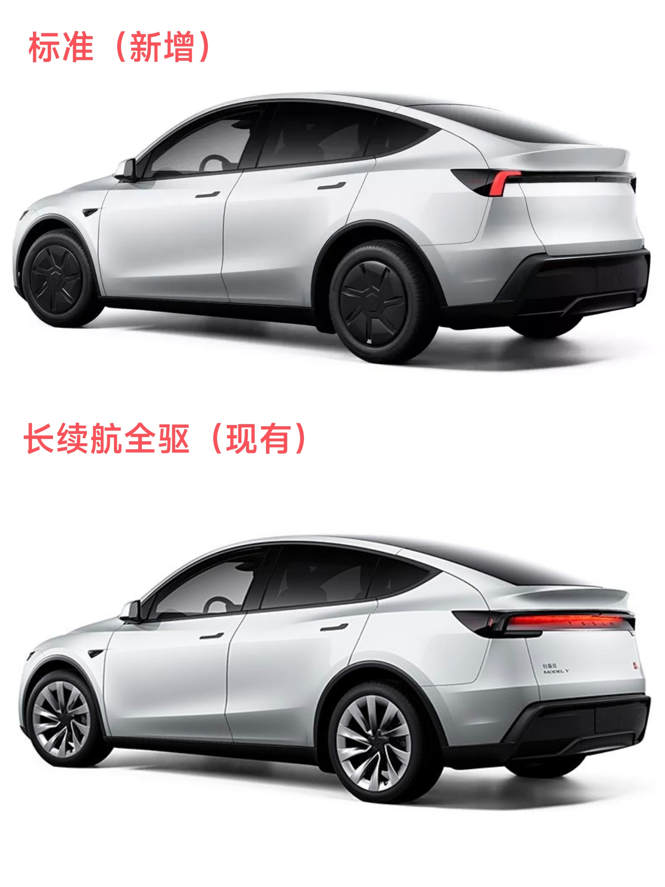 modelY新增的标准版车尾也不行,把新款引以为傲的贯穿式反射尾灯减配了。