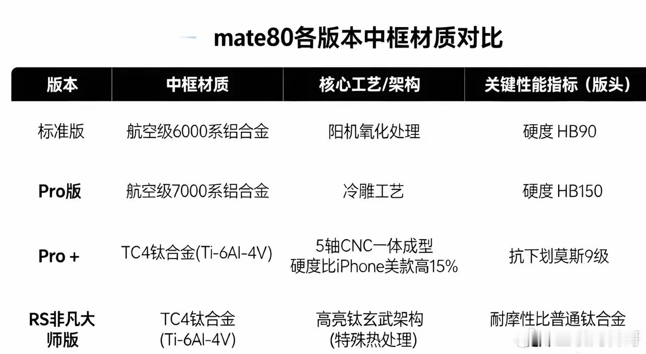 Mate80各个版本材质大升级!也就只有华为这么舍得用高成本材质了!航空级铝合金和钛合金都用上了!