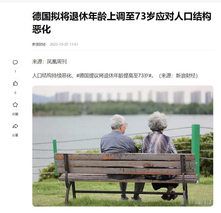 别再迷信鼓吹,欧洲的高福利了!德国已提议将退休年龄,提高至73 岁,以防止养老金体系崩溃。 真说起来,德国的养老金危机,也不是一天两天了,但这次激进到要延迟6年,可见是真扛不住了。看联邦统计局的数据就知道,2023年德国65岁以上的人,已经占了总人口的22%,相当于每5个人里就有一个老人,比1991年的15%翻了快一倍,而且还在以每年0.5%的速度涨,照这趋势,2030年得突破21.6%。 可另一边呢,生育率常年低于1.5,连维持人口更替需要的2.1都达不到,以后缴养老金的年轻人越来越少,领钱的老人越来越多,这体系能不垮吗?2024年联邦财政就掏了1270亿欧元填窟窿,这钱占了整个联邦预算的四分之一,要是不改革,到2035年缺口可能得占GDP的3%以上,到时候别说养老金,整个国家财政都得崩。 如今,政府想的倒是简单:让大家多干几年,多缴点钱,晚几年领钱,一进一出缓解压力,可这纯属拆东墙补西墙,把普通人的生活计划,全打乱了。 这政策乍看着,是“全民一起扛”,实则把人分成了三六九等。对那些坐办公室的白领、制定政策的人来说,工作到73岁或许还能忍。毕竟不用干重活,吹着空调敲敲键盘,收入稳定,还有好的医保兜底。但对工地上扛钢筋的、流水线上拧螺丝的蓝领来说,这简直是噩梦。 德国工会前不久做的调查显示,超过70%的蓝领都觉得,自己的身体撑不到73岁,常年累月的体力活,早把腰和膝盖熬坏了,不少人甚至担心,自己能不能活过退休那天。更讽刺的是,德国企业根本不想雇高龄员工,现在实际退休年龄早就低于法定年龄,很多人60岁左右要么因为身体不行扛不动活,要么被企业以“效率低”为由裁员,提前就没了工作。 现在政府逼着延迟退休,又不解决企业雇佣高龄员工的问题,到时候很可能是老人没工作,还领不到养老金,这不等于把人往绝路上逼?这种只喊口号不解决实际问题的“纸面改革”,不仅救不了养老金体系,反而会把社会矛盾越积越深。 其实,德国这事儿不是个案,整个欧洲的高福利早就绷不住了。二战后那几十年,欧洲靠经济高速增长、人口红利多,才搞出了“从摇篮到坟墓”的福利体系。生娃有补贴、看病不花钱、退休有保障,当时看着是人人羡慕的好日子,可现在这两大支柱全塌了。 经济上,欧洲增速常年低迷,德国作为“欧洲火车头”,2023年GDP也就涨了1.2%,连维持基本开支都费劲,哪还有钱填福利的窟窿?人口上,老龄化、低生育率是全欧洲的通病,意大利、西班牙这些南欧国家比德国还严重,意大利65岁以上人口占比都快24%了,年轻人少得可怜。 更糟的是,欧洲国家应对危机时总爱顾此失彼,比如当年默克尔搞“能源转型”,本想摆脱对俄罗斯化石能源的依赖,结果俄乌冲突一来,俄罗斯断了天然气,欧洲能源成本直接飙上天,不少工厂要么倒闭要么迁到其他国家,政府还得掏出巨额补贴给民众补能源差价,养老金的钱自然就被挤掉了。这么折腾下来,欧洲的高福利就像一座地基烂了的大厦,看着光鲜,其实早就在晃了,说不定哪天就塌了。 可政府想靠延迟退休解决问题,根本是治标不治本。真要救养老金体系,得搞结构性改革,比如提高生育率、吸引移民、改革劳动力市场,可这些事儿哪件都不好办。就说提高生育率,德国政府试过延长产假、给育儿家庭发补贴,甚至免费提供托儿所,可2023年生育率还是只有1.3,该低还是低,年轻人要么养不起孩子,要么不想被家庭绑住,政策再给力也没用。 吸引移民吧,倒是能补劳动力缺口,可又引发了社会矛盾,这些年德国极右翼政党越来越火,就是因为不少民众觉得移民抢了工作、拉低了生活水平,抗议游行一次比一次激烈。 更关键的是,过度慷慨的福利早就养出了惰性,德国经济研究所的报告说,德国的劳动参与率比美国、日本都低,很多人宁愿领失业金也不想找工作,在全球化竞争里这就是硬伤。不把这些根子上的问题解决了,光靠延迟退休,最多是缓几天,该崩还是得崩。 说到底,德国这出闹剧算是给那些,迷信“欧洲福利神话”的人,泼了盆冷水。高福利从来不是天上掉下来的馅饼,得有经济增长、人口红利托着才行,一旦这俩没了,福利就成了压垮国家的重担。 以前总有人说“欧洲人不用干活就能领钱”,现在再看,还不是得加班加到73岁?对咱们中国来说,这教训也得记着,完善社保是好事,可不能脱离经济实际搞“福利乌托邦”,不然最后埋单的还是普通人。毕竟时代变了,没有谁能靠“躺平领福利”过一辈子,欧洲现在的困境,就是最好的例子。 不知道大家怎么看?是觉得德国这招实在没辙,还是觉得牺牲普通人利益太不合理?要是换作咱们,真遇到这种情况,又该怎么办呢? 参考资料:凤凰周刊