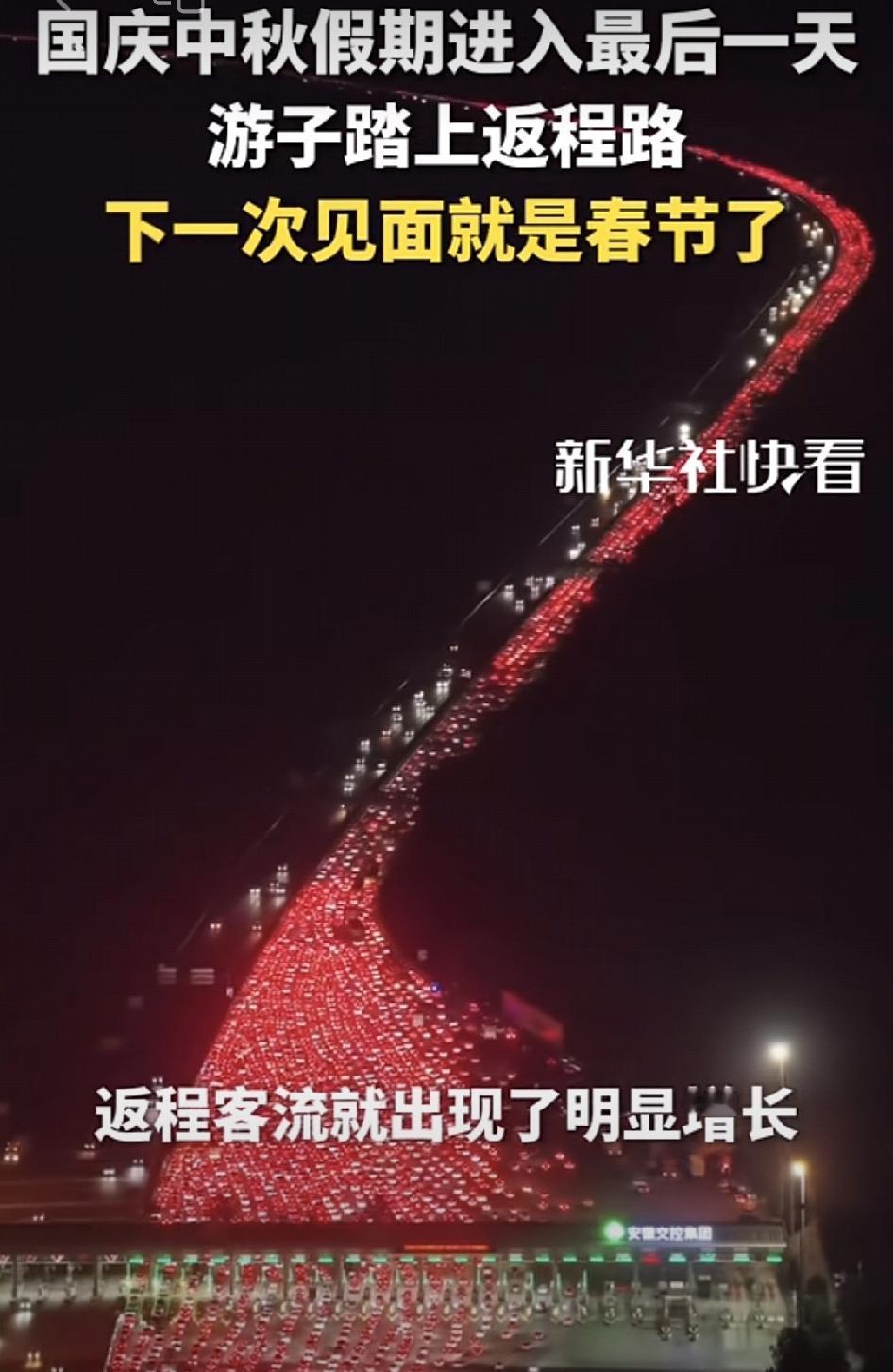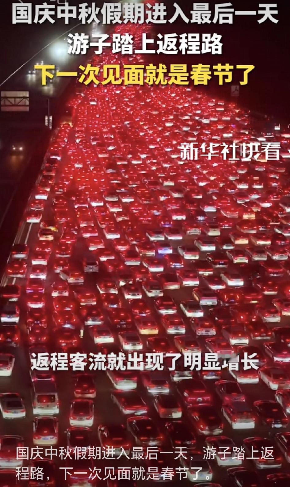 八天国庆中秋假期即将收尾,希望每一个旅客都满载而归,顺利平安回家!感恩祖国繁荣昌盛,四通八达的交通网络,咱们老百姓有尊严地工作、生活、旅行……我们有理由相信,随着中国经济进入智能时代高质量发展,国家综合国力越来越强大,物质文化水平越来越高,人民群众的获得感越来越多,人民群众享受到更高水平的工作条件和生活质量,以后假期越来越多,人民群众享受的休闲娱乐旅行的时间也越来越多。