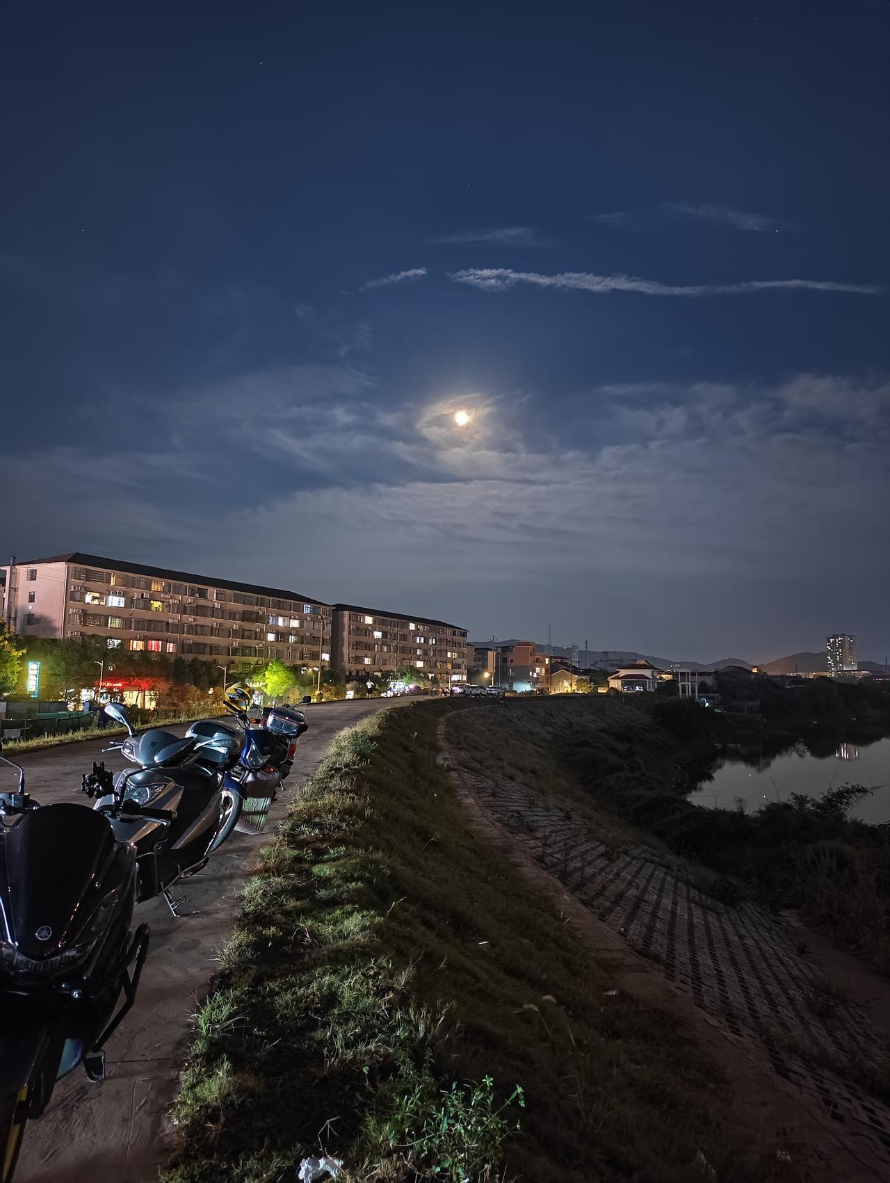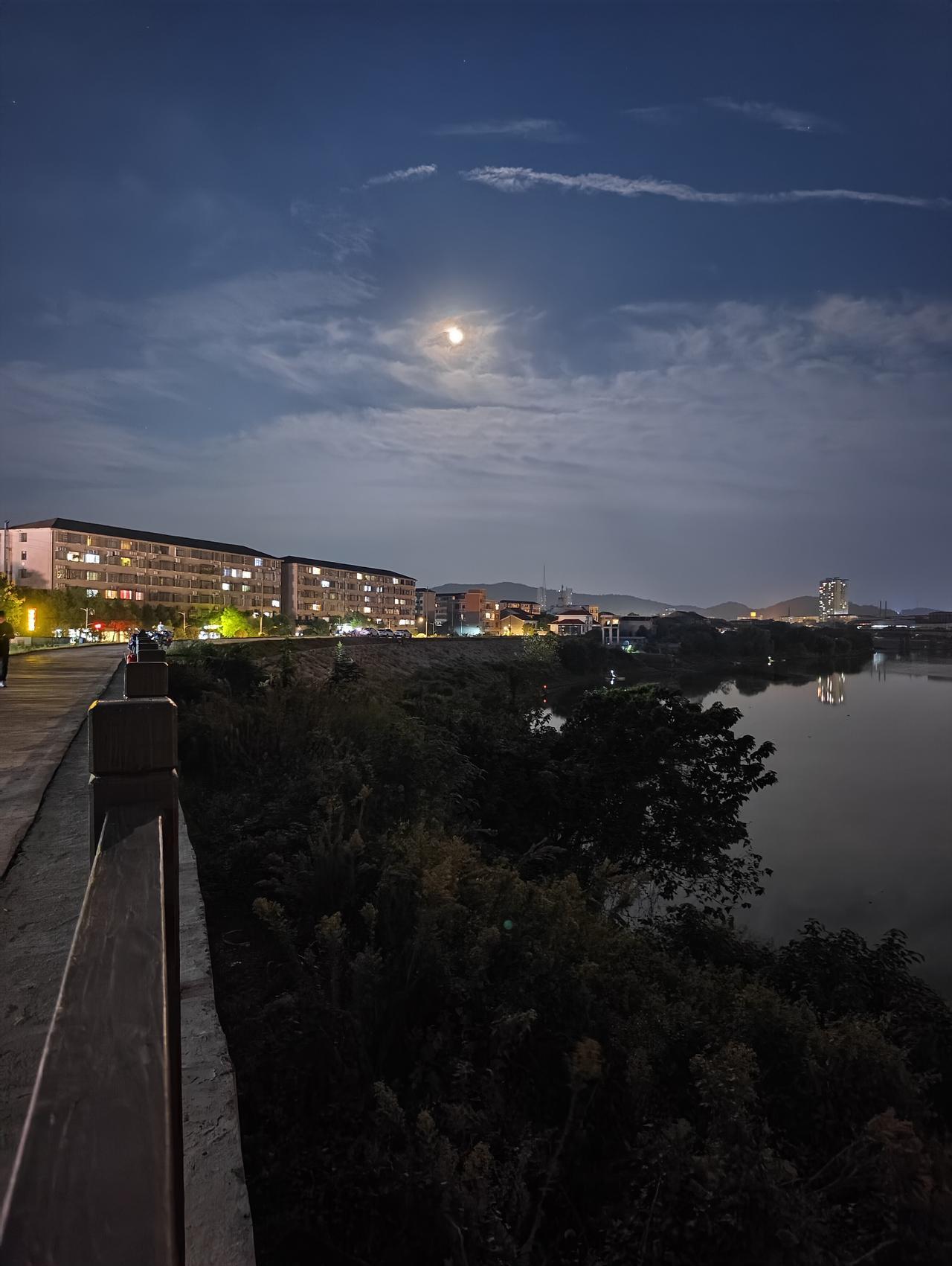 十五的月亮十六圆,此言非虚! 中秋节晚上没时间过来赏月,今天补上,却发现今晚的月亮似乎更圆更亮; 大堤上散布着三三两两的人群,或坐或站或行走; 大堤下的河边还有人在夜钓,浮标上的荧光在夜色中闪着幽蓝的光。 晚风徐来,带着阵阵的桂花香; 整个人沐浴在这月色和花香中,有一种说不出的舒适和喜悦 ——这大概就是延迟满足的快乐吧?