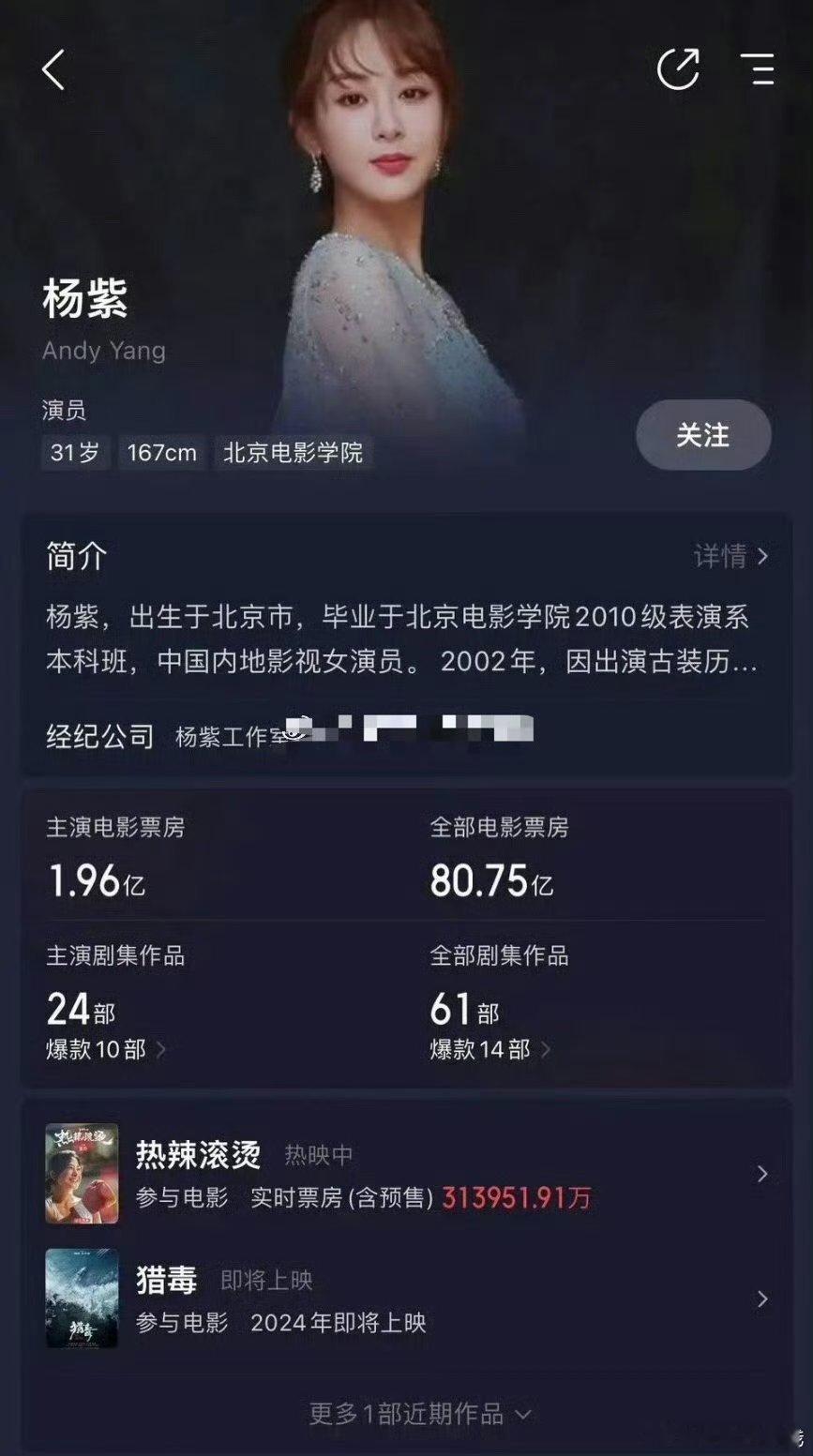 杨紫的电影总票房突破80亿了,感觉杨紫一直以来都很敬业努力希望能看到紫妹获得