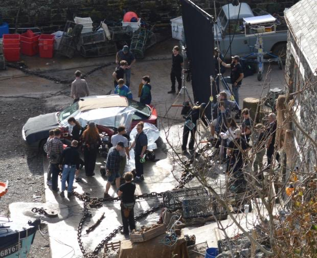 剧版《哈利·波特》今天在卡奇维斯拍摄了一个抓马的场景。据The Packet报道,拍摄先在卡奇威斯湾旅馆开始,随后转移到海滩,其中一辆汽车被渔船包围,还有身着传统西南风格的群演。目前天气晴朗,特效团队提供了人工降雨。据报道,该场景中,哈利可能和由贝尔·波利饰演的佩妮姨妈被一名持枪男子勒令下车(图1-6)。